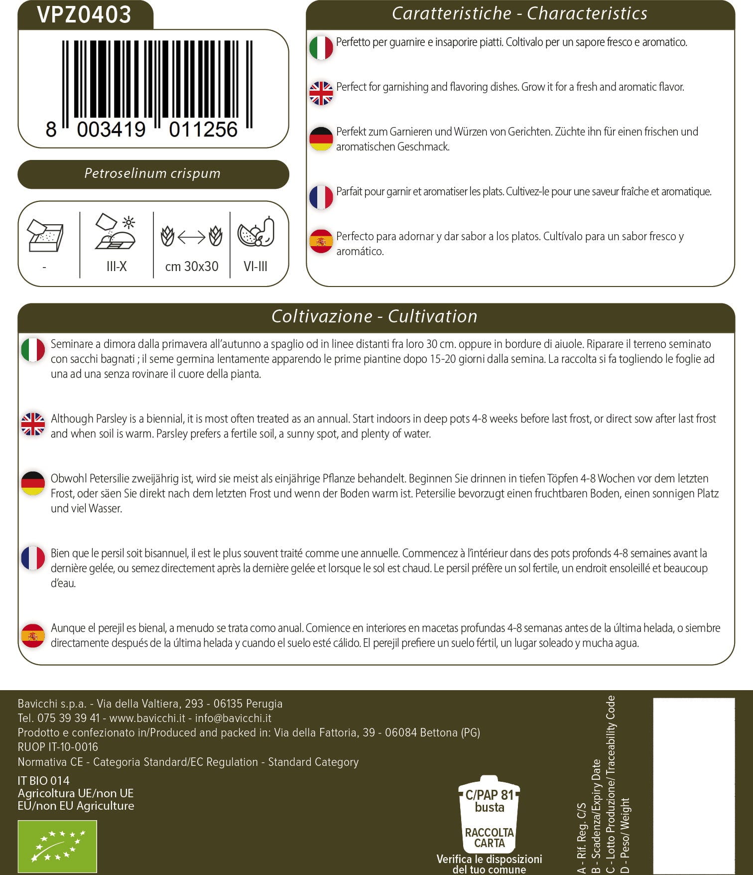 Izkušnenj v jeziku slovenščina za izdelek Bavicchi Bio peteršilj