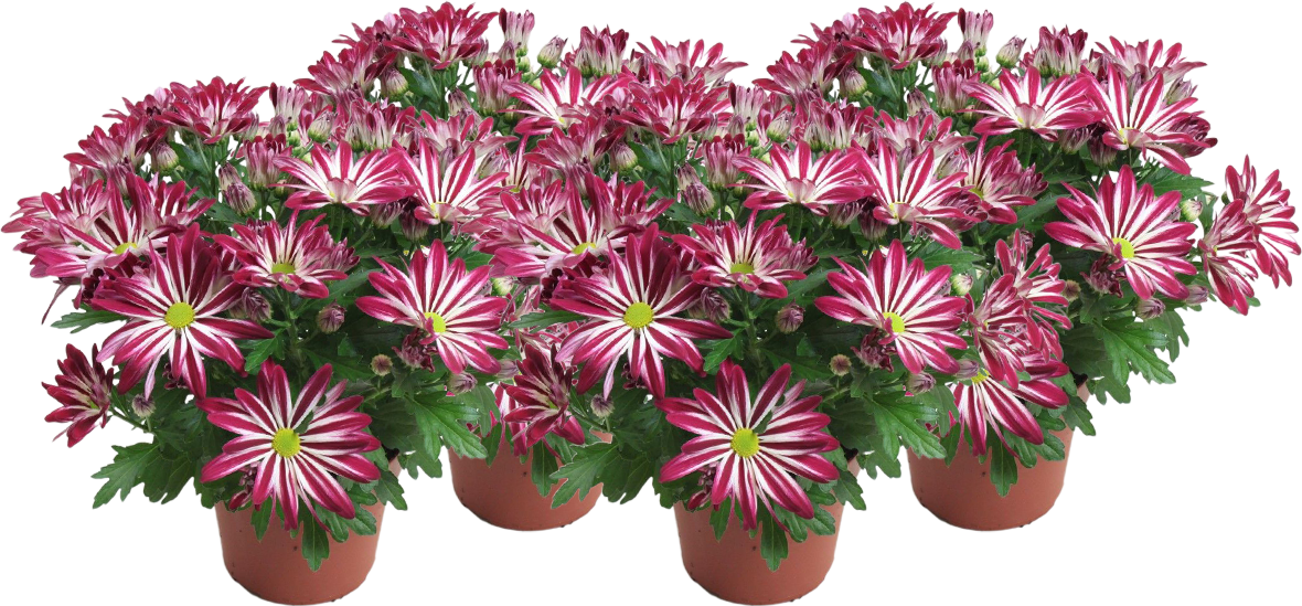 Krizanteme 'Rainbow Carousel' navdušujejo z živo vijolično in belo barvno kombinacijo ter bogatimi cvetovi. Rastline so enostavne za nego, robustne in primerne za rezanje - idealne za grede, balkone ali cvetlične lonce. Prava paša za oči za vsako jesensko zasaditev.