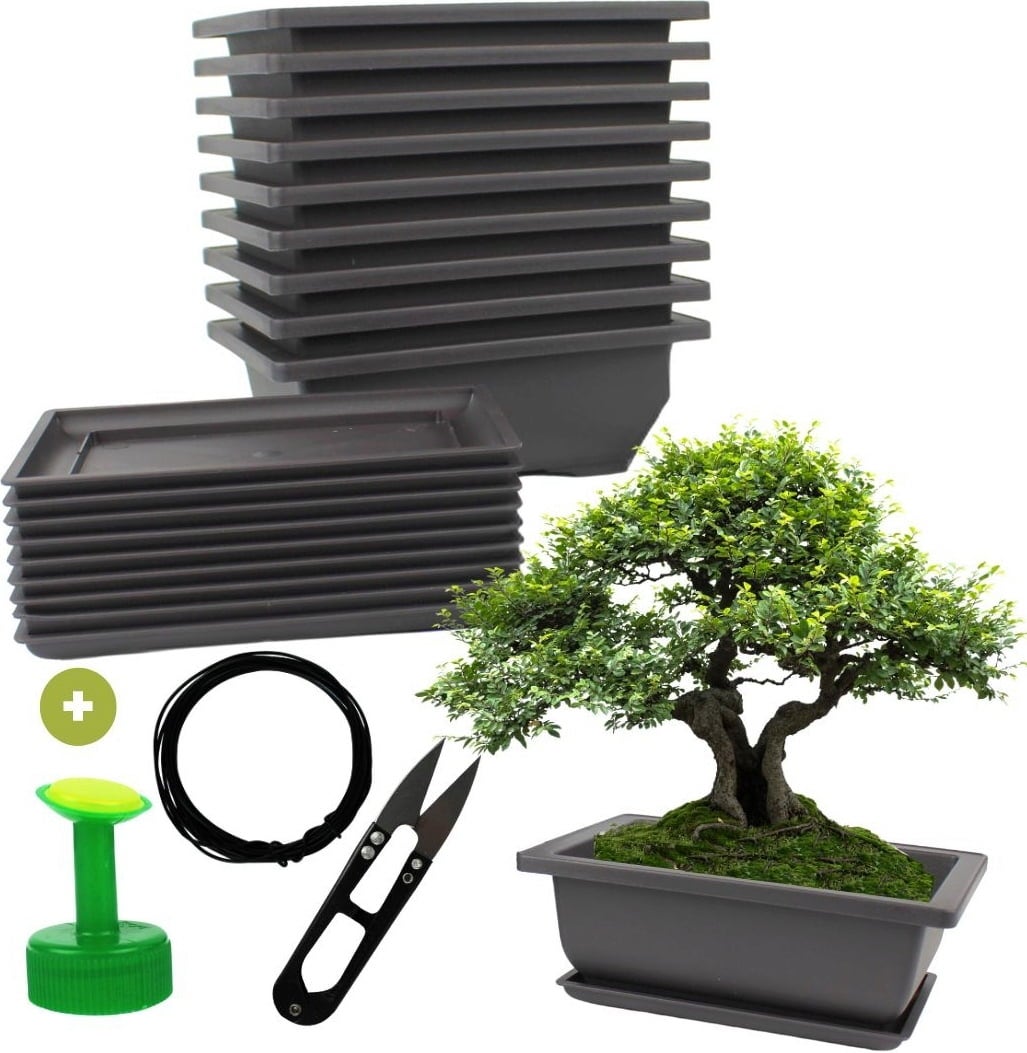 Odkrijte popolne dodatke za bonsaje! Ta komplet vsebuje 10 visokokakovostnih loncev za bonsaje s podstavki in je idealen za gojenje, nego in razstavljanje vaših miniaturnih drevesc. Ne glede na to, ali ste začetnik ali izkušen ljubitelj bonsajev, vam bo ta komplet pomagal ustvariti harmoničen bonsajski ansambel v svojem domu.