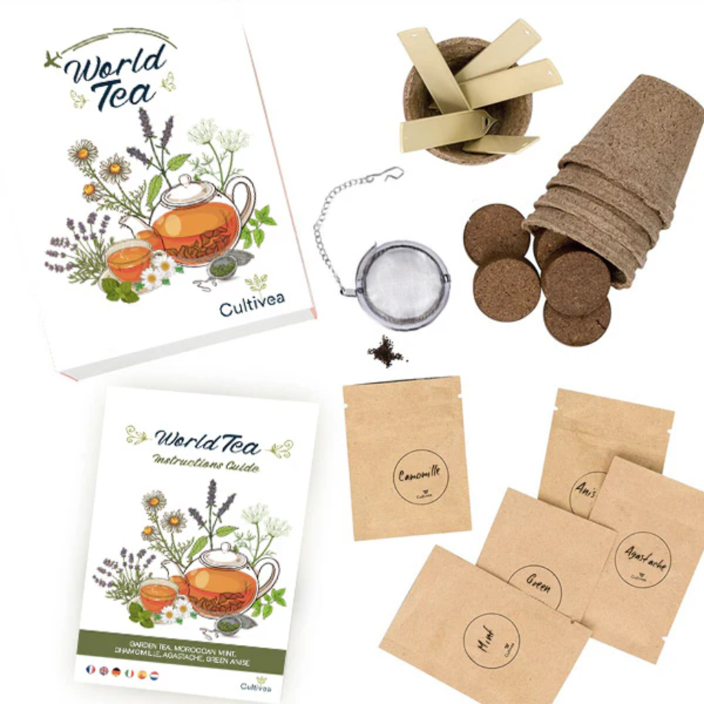 Skuhajte si lastne čaje in poparke kar doma ter odkrijte okuse sveta. Ta komplet vsebuje vse, kar potrebujete za uspešno gojenje domačega čaja – od bio semen in šotnih tablet do majhnih lončkov in označevalcev. Tako lahko sami pripravljate edinstvene čaje in se zabavate ob vrtnarjenju brez vrta.