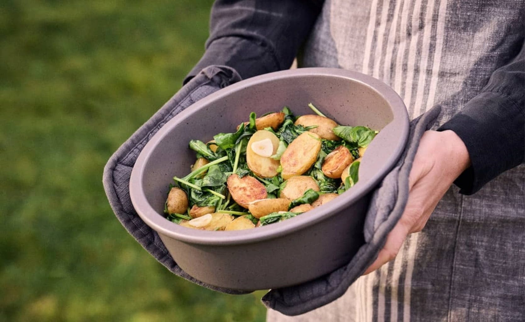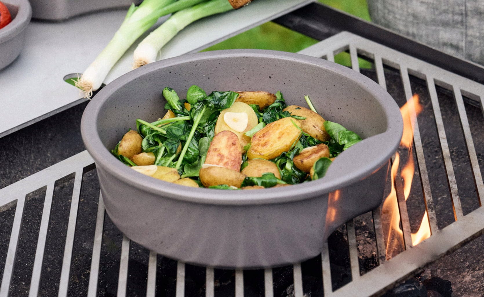 Ta inovativna, ognjevarna posoda za žar in pečico je elegantna tudi pri serviranju. Keltski lonec lahko postavite neposredno nad ogenj in ga ni treba predhodno močiti. Keramika se segreje v le nekaj minutah. Zahvaljujoč posebni glazuri lahko poteka peka brez maščobe – za zdravo kuhanje in intenzivne okuse praženja.