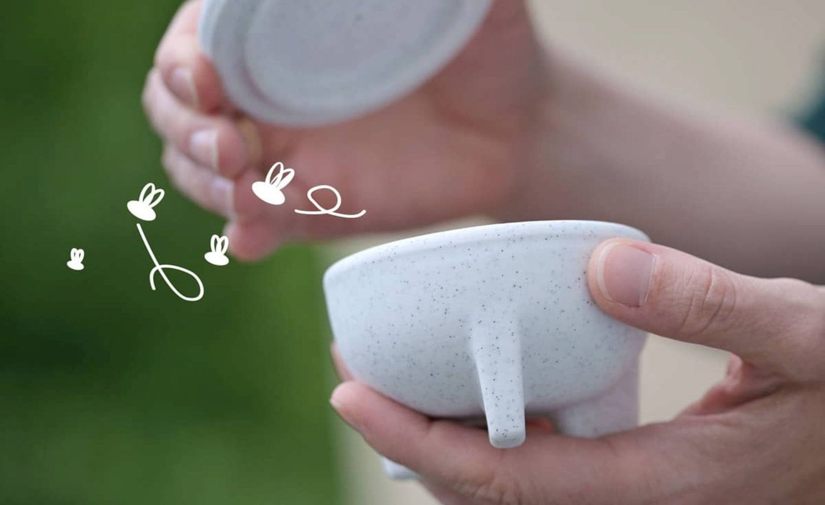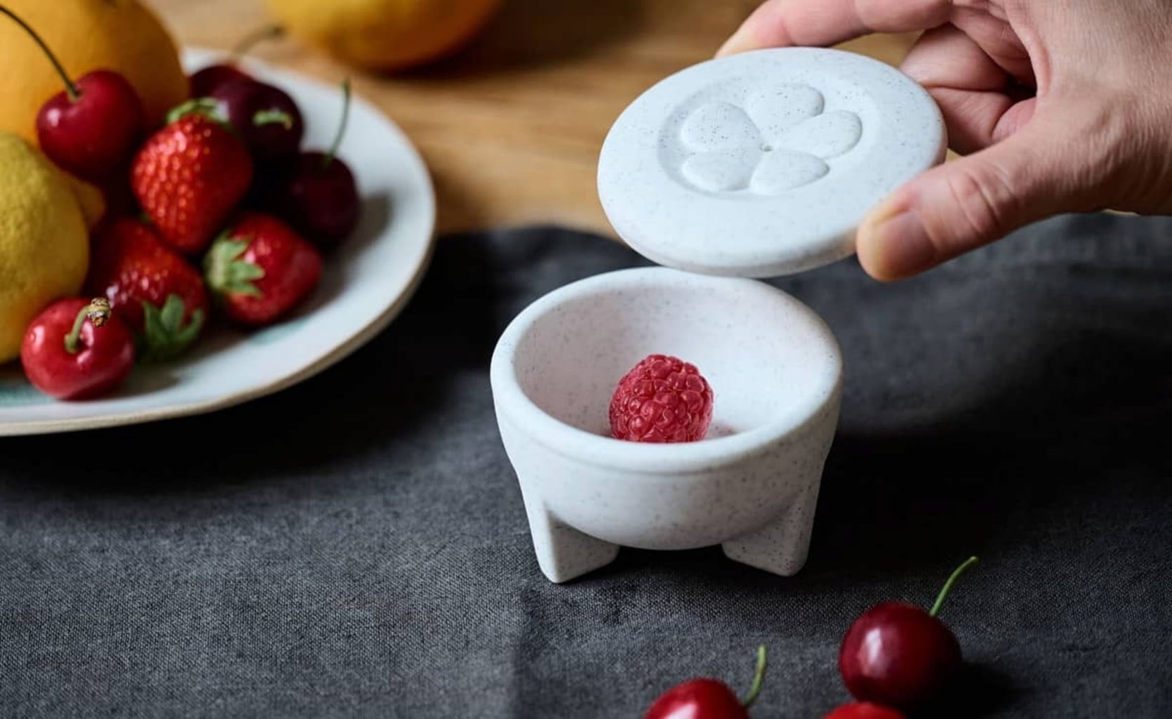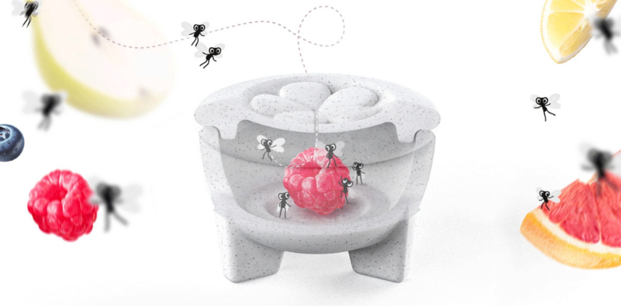 Naraven in eleganten način za boj proti nadležnim sadnim mušicam. Posodico napolnite jo s koščkom sadja in malo kisa, da privabite žuželke in jih pustite, da se skozi luknjo splazijo v notranjost, od koder ne morejo več odleteti. Nato preprosto odprite pokrov zunaj in žuželke izpustite.
