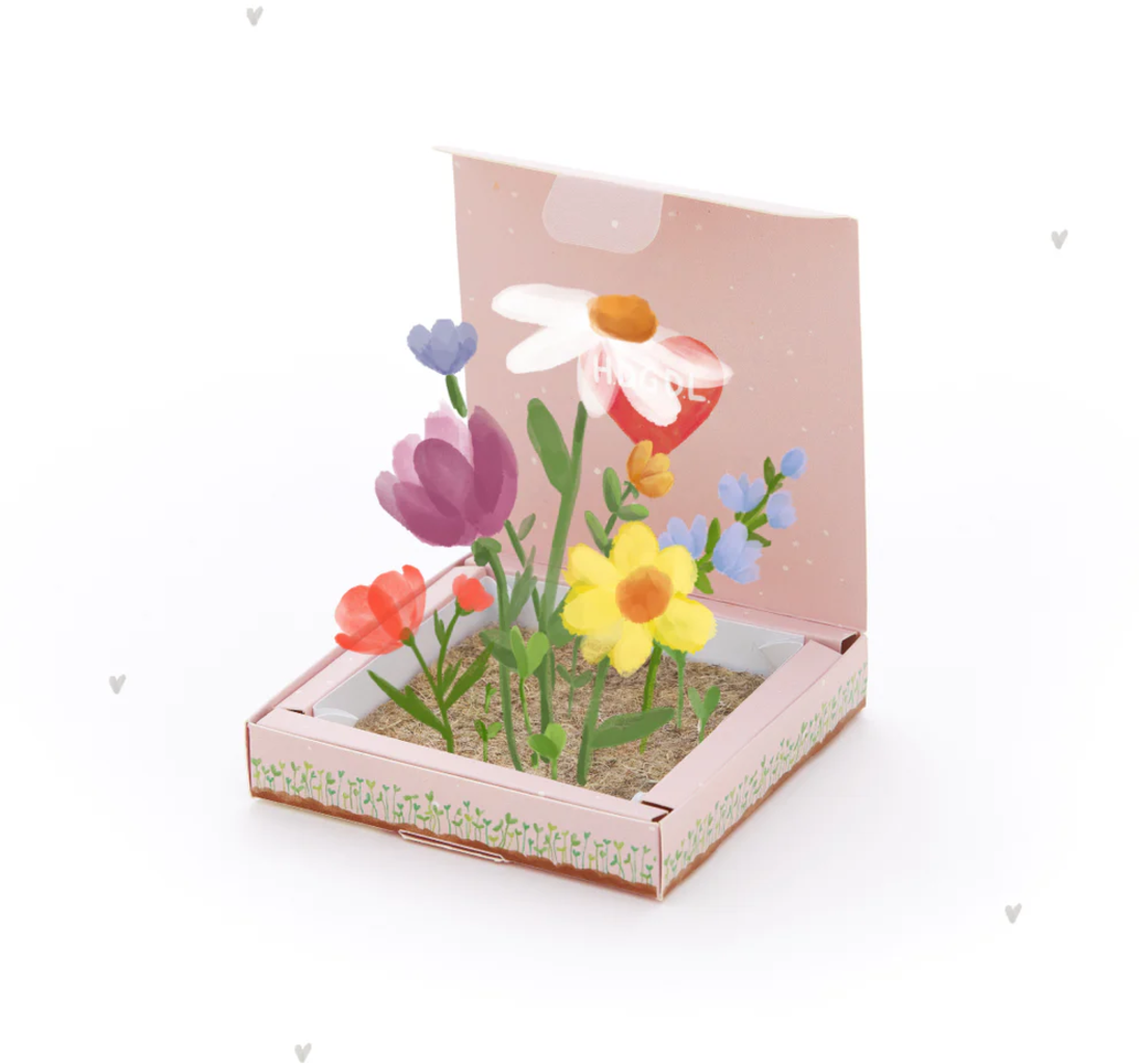 Povejte osebi s petimi črkami, da jo ljubite. Ta ljubeče oblikovana škatla izraža čustva na kratko – iskreno, preprosto in iz srca. Idealno je za vašega najboljšega prijatelja, najljubšo osebo ali kogar koli, ki je preprosto pomemben v vašem življenju. Iz semena zraste pisano morje cvetov – živahen simbol prijateljstva in povezanosti.
