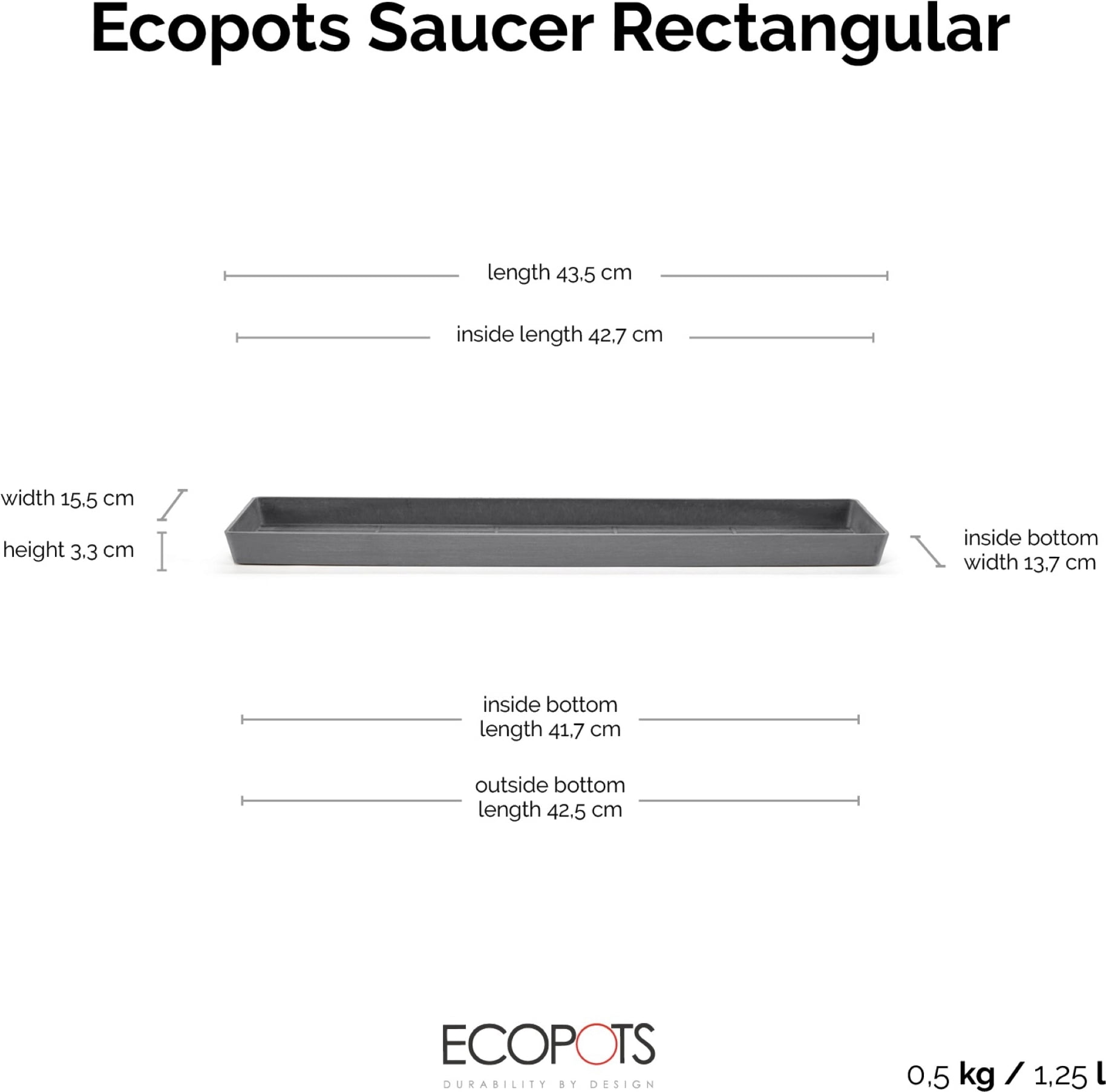 Ta podstavek za cvetlično korito znamke Ecopots je popoln dodatek k istoimenskemu cvetličnemu koritu - funkcionalen, eleganten in trajnosten. Občutljive površine ščiti pred vlago in zagotavlja čisto zbiranje odvečne vode. Izdelan je iz reciklirane plastike in se zaradi preprostega videza harmonično zlije z obliko cvetličnega korita. Idealen je za balkone, okenske police ali notranje vrtove - praktičen in lep hkrati.