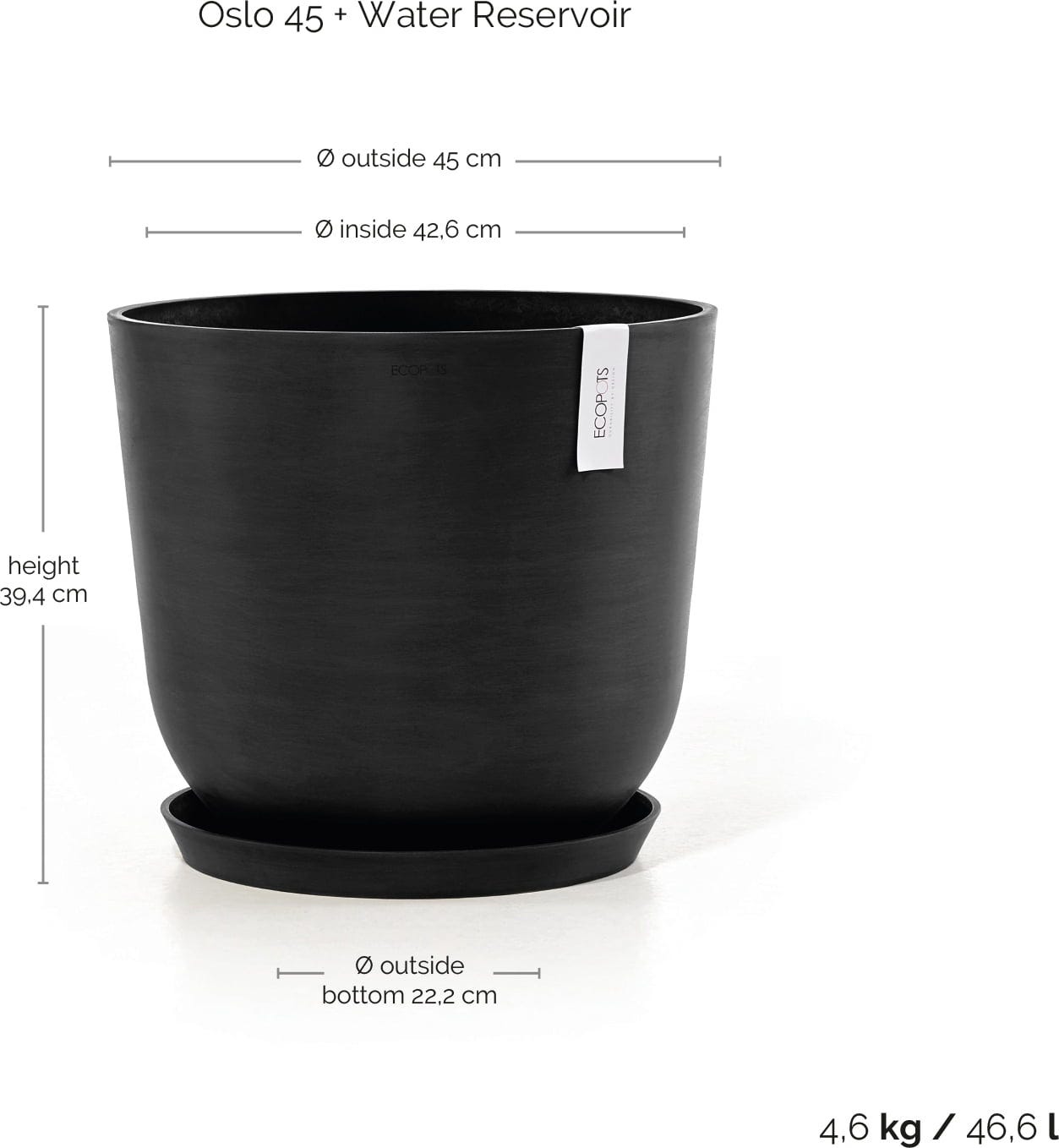 Ecopots Oslo cvetlični lonec z rezervoarjem za vodo, temno siva, Ø 45 cm, višina 39,2 cm