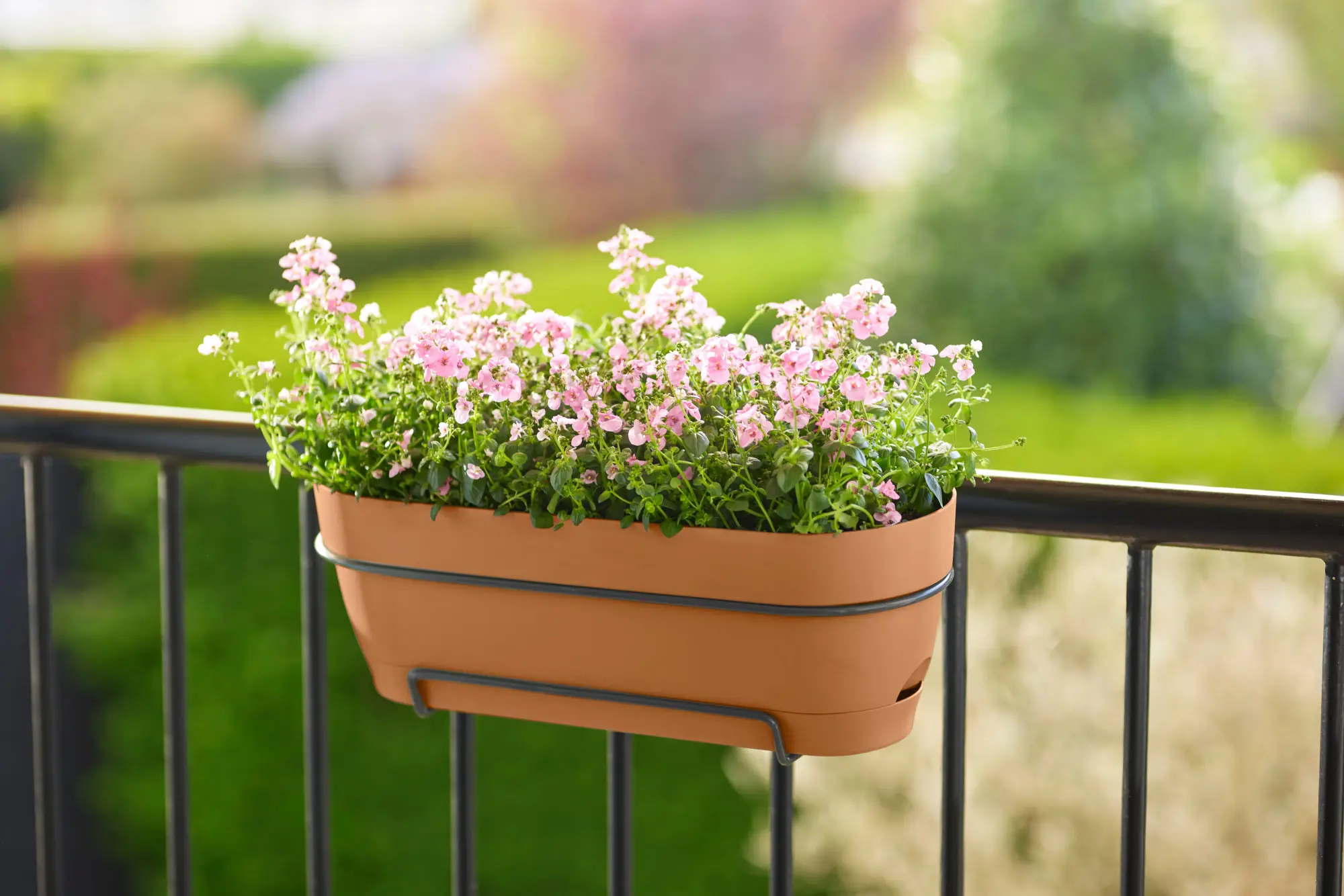 S trajnostno izdelanim balkonskim koritom v trendovskih barvah lahko ozelenite balkonske ograje, ograje in okenske police na sodoben način in svoj dom spremenite v zeleno oazo. Ne glede na to ali posamično ali v kombinaciji z drugimi lonci iz serije vibia, je to balkonsko korito vedno odlična paša za oči, saj vašim rastlinam zaradi vgrajenega zbiralnika vode vedno zagotovi dovolj vode.