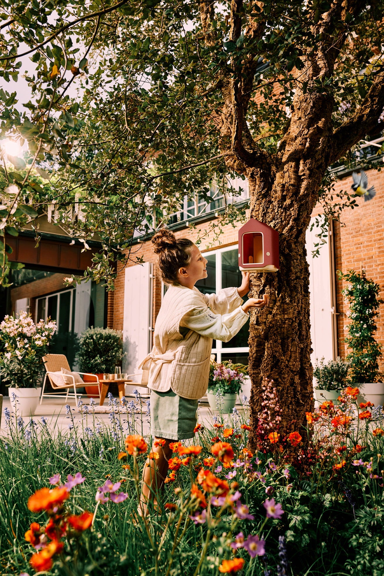Ta elegantna krmilnica za ptice iz reciklirane plastike je bila razvita v sodelovanju s strokovnjaki in se s svojimi naravnimi barvami harmonično vključuje v skrbno oblikovane vrtove, terase in balkone. Ima zaščiten prostor s ptičjo kadjo in prostorom za hranjenje, zato lahko svojim pernatim obiskovalcem ponudite varen prostor za hranjenje in rast.