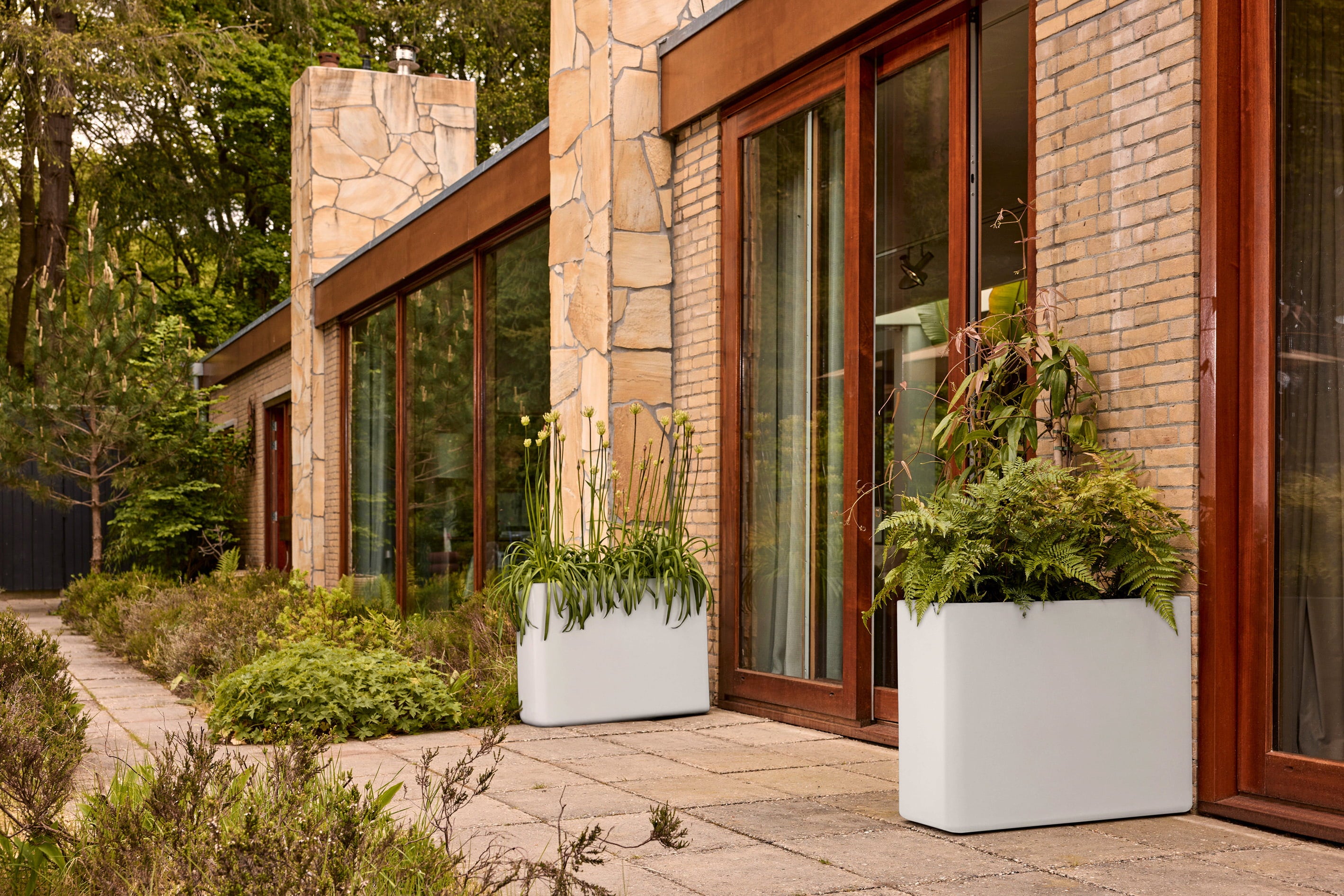Ta cvetlični lonec iz reciklirane plastike navdušuje s svojimi jasnimi linijami, ki dajejo vsakemu prostoru izrazito eleganco in se harmonično ujemajo z najrazličnejšimi notranjimi slogi. Odlično se obnese kot zelena pregradna stena, ki v notranje in zunanje prostore vnese živahno strukturo.