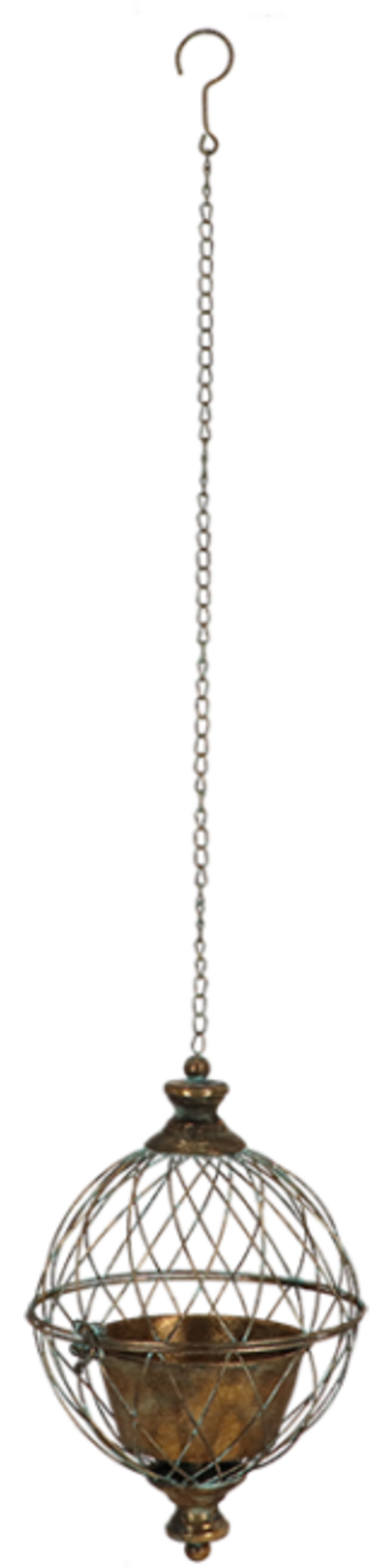Ta okrogli viseči cvetlični lonec navdušuje s starinskim kovinskim videzom v nežnem zlatem tonu s prefinjeno bakreno površino. Idealen je za obešanje rastlin in doda eleganten poudarek balkonom, terasam ali notranjosti. Lonec je primeren za notranjo in zunanjo uporabo, priložena pa mu je trpežna veriga za enostavno obešanje.