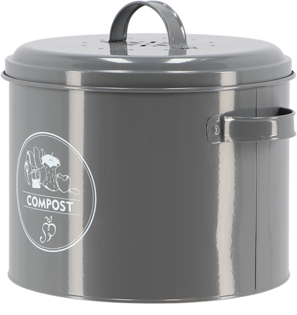 Ta kompostnik spretno skrije vaše bio odpadke in hkrati izgleda neverjetno dobro! Posoda iz ogljikovega jekla ima lep premaz in lep tisk. Pokrov ima prezračevalne luknje in filter z aktivnim ogljem, ki preprečuje neprijetne vonjave. Z ročaji ob strani lahko kompostnik tudi enostavno prenašate in praznite.