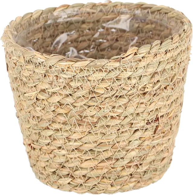 Ta pleten cvetlični lonec iz morske trave izžareva prijetno miren čar in poudarja prijetno vzdušje v vašem domu. Zaščitna plastična folija na notranji strani preprečuje umazanijo in madeže, zaradi česar je ta cvetlični lonec popolna izbira za vaše sobne rastline.