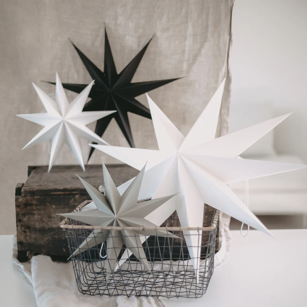 Pričarajte zimsko in božično vzdušje v svojem domu z zložljivimi papirnatimi zvezdami. Naj bodo na oknu, na steni ali prosto obešene v sobi – te zvezde dodajo dekorativne poudarke kjer koli. Po praznikih jih lahko preprosto zložite in shranite, da prihranite prostor in vam bodo leto za letom prinašale veselje.