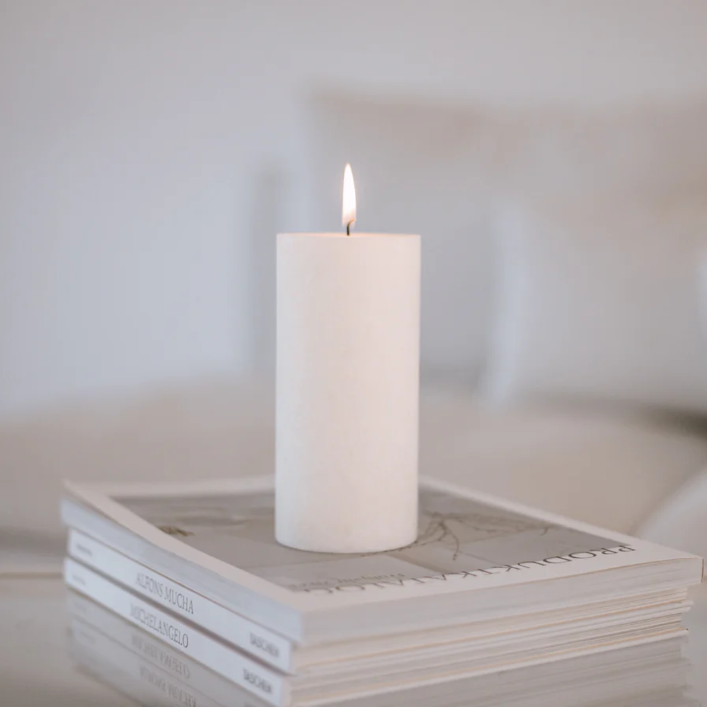 Eulenschnitt Stebričasta sveča iz olivnega voska - velika, bela