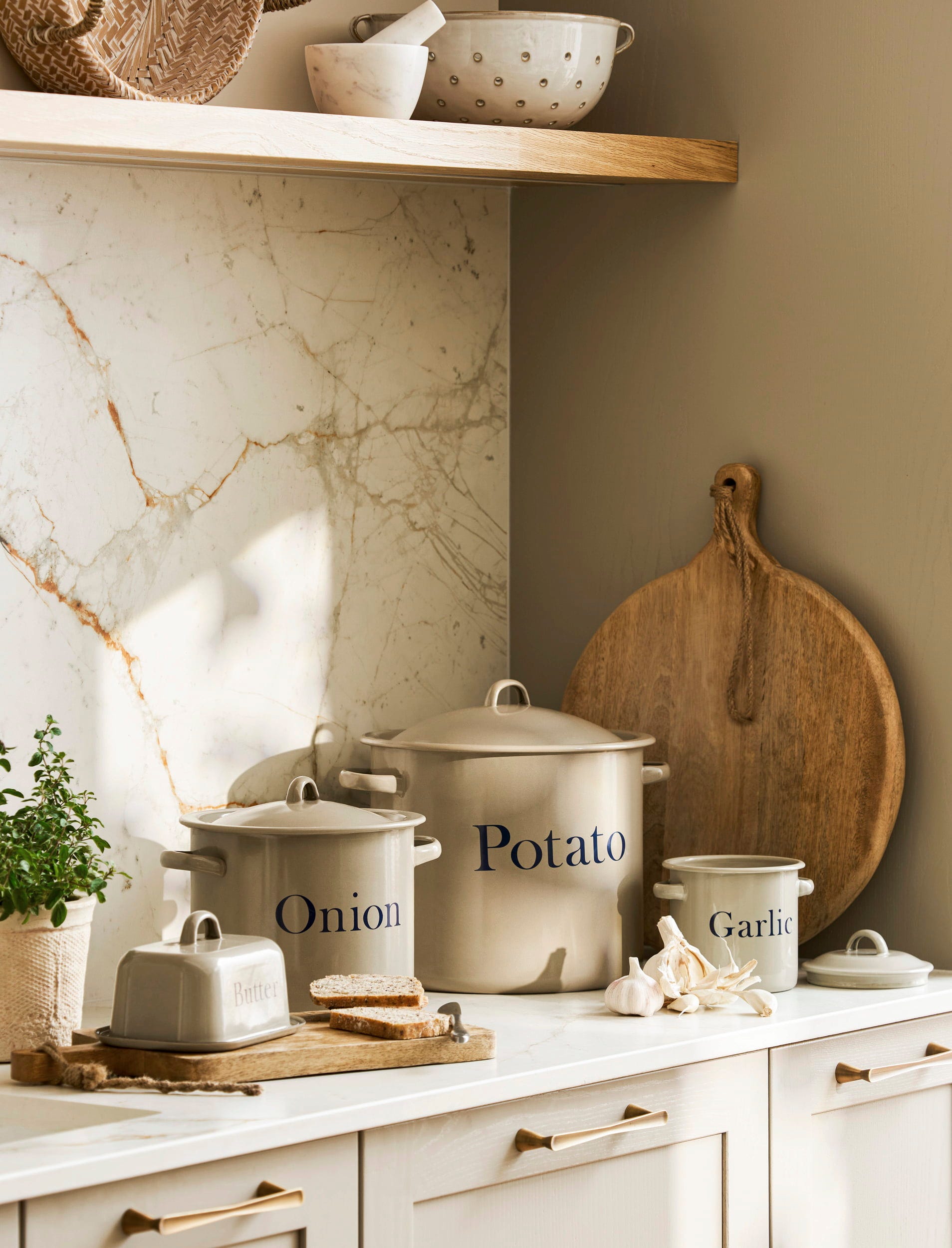 Ta posoda za maslo, izdelana iz trpežnega emajla v topli bež barvi, je idealna za ohranjanje svežine masla v hladilniku, shrambi ali neposredno na pultu, pa tudi za privlačno serviranje.