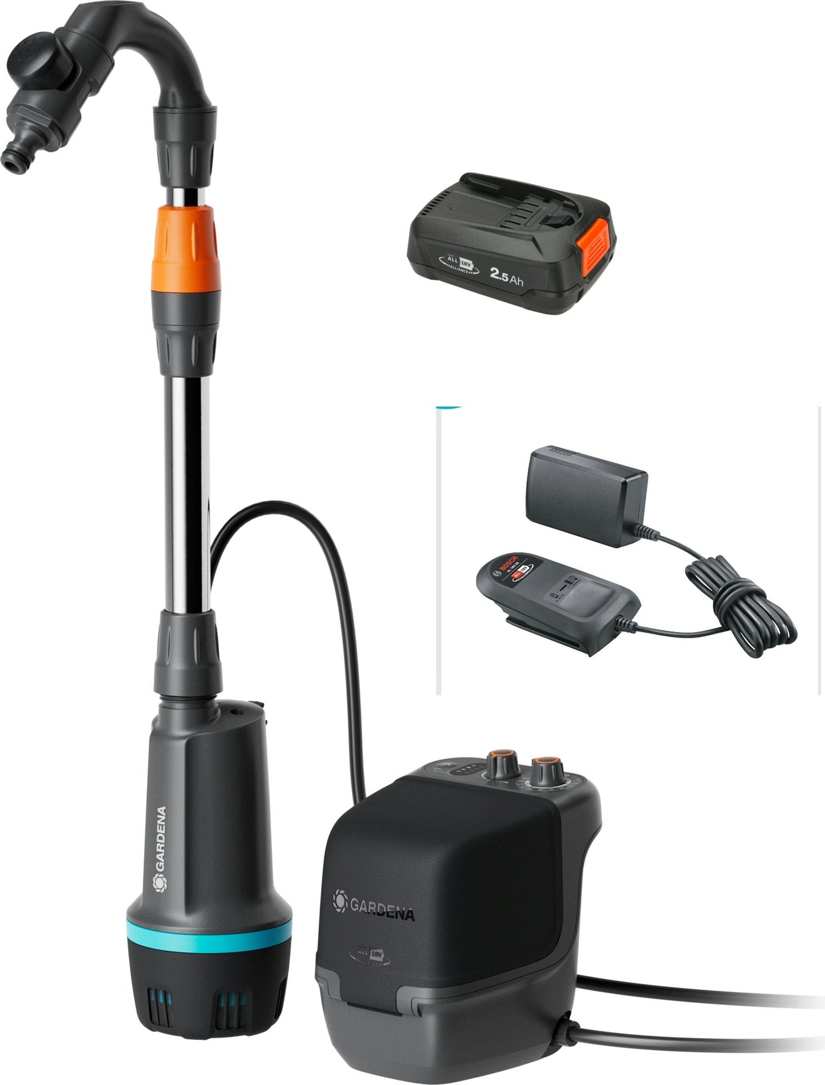 Tehnološki vrhunec naprave je tehnologija konstantnega tlaka: medtem ko pri običajnih akumulatorskih črpalkah ob praznjenju akumulatorja zmogljivost pade, ta model do samega konca zagotavlja več kot 90 % polne moči. Z izvlečno aluminijasto teleskopsko cevjo črpalko popolnoma prilagodite globini vašega rezervoarja. In če imate druge obveznosti: funkcija časovnika samodejno izklopi črpalko po 5, 10 ali 15 minutah – to varčuje z vodo, ohranja akumulator in vam daje svobodo, da se posvetite drugim stvarem.