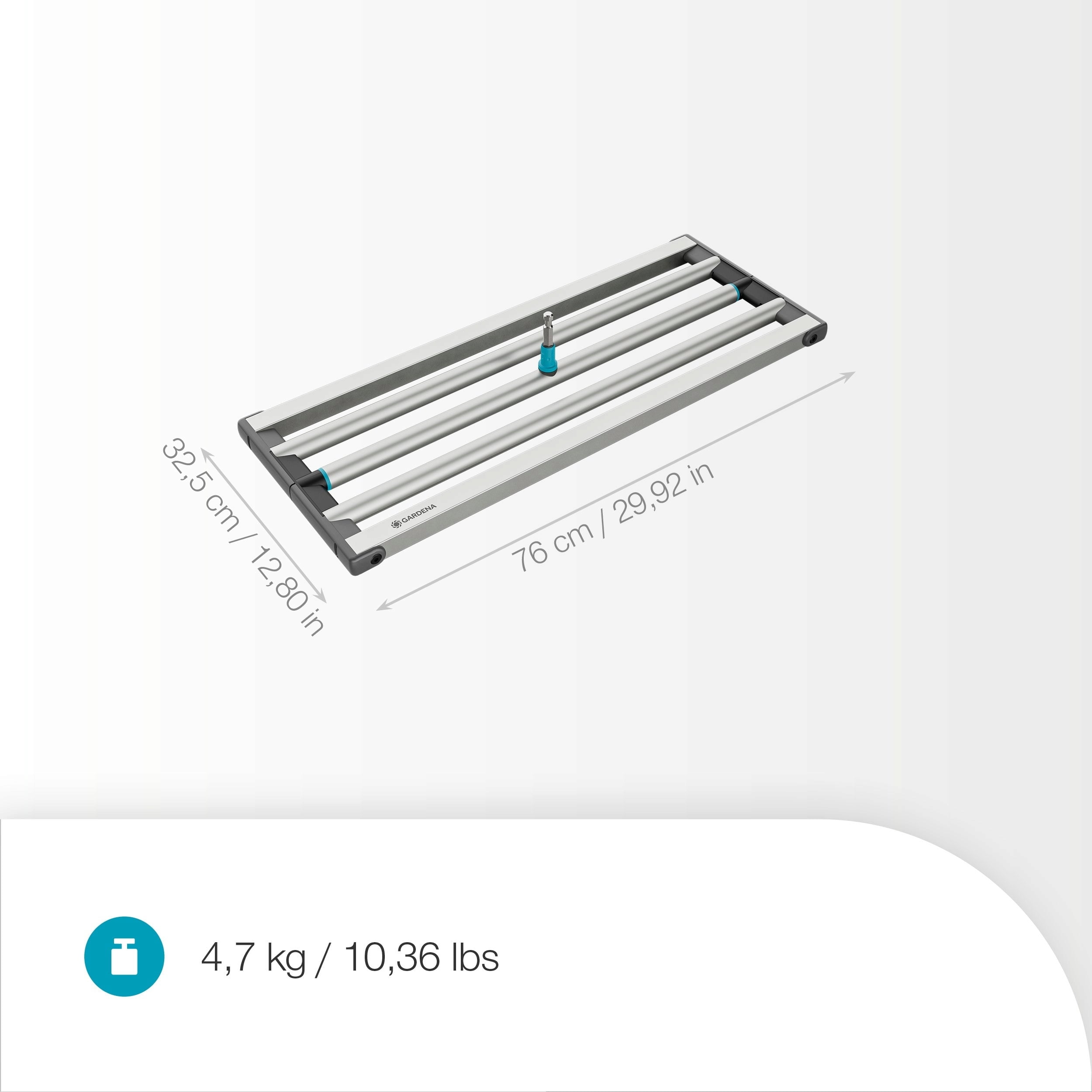 Pozabite na naporno ročno izravnavanje – z grabljami za izravnavo trate combisystem znamke GARDENA boste zemljo, pesek ali substrate nanesli tako hitro in enakomerno kot profesionalci na igriščih za golf! Zahvaljujoč izjemno široki delovni površini 76 cm boste v trenutku poravnali tudi velike površine, najsi gre za izravnavo neravnin po prezračevanju trate ali pripravo podlage za povsem novo trato. Posebej zaobljene notranje plošče in vogali poskrbijo, da orodje z lahkoto drsi po tleh, ne da bi se nanj prijela vlažna zemlja ali bi se poškodovale nežne travne bilke. Tako z minimalnim trudom dosežete popolnoma ravno površino, ki je idealna osnova za rast.