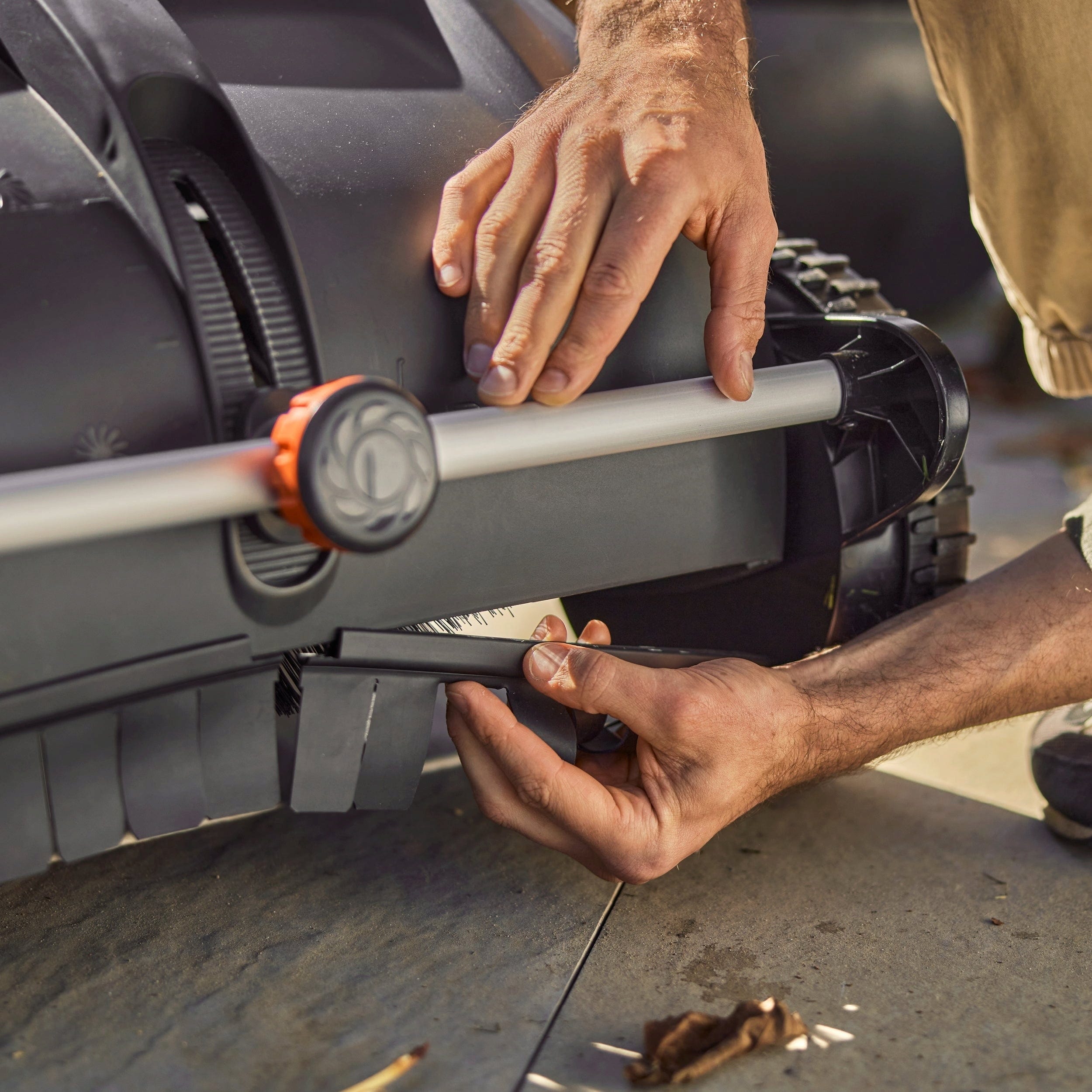 Spremenite svoj zbiralnik listja in trave v vsestranski pripomoček za utrjene površine! S tem kompletom občutno optimizirate pobiranje listja in pokošene trave na terasah ali pločnikih. Specializirane ščetke s patentirano Helix obliko bistveno učinkoviteje grabijo vrtne odpadke na trdi podlagi, medtem ko prilagodljiv sprednji spojler poskrbi, da nič ne ostane zadaj.