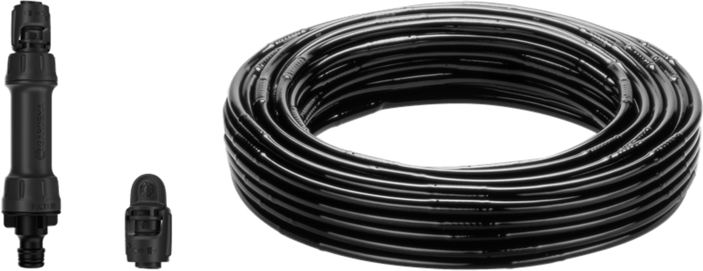 Idealno kapljično namakanje za žive meje in grmičevje! Ta obsežen začetni komplet vsebuje vse pomembne komponente za takojšnji začetek. Sami izberite, ali želite sistem položiti nad ali pod zemljo. Stalna dobava vode 1,6 litra na uro omogoča varčno namakanje. Tlačno kompenzirani kapalniki izpuščajo vedno enako količino vode, tudi če so višinske razlike. S patentirano tehnologijo povezovanja Quick & Easy je komplet tudi zelo enostaven za sestavo in ga je mogoče kadarkoli razširiti z drugimi izdelki iz sistema Micro-Drip-System.