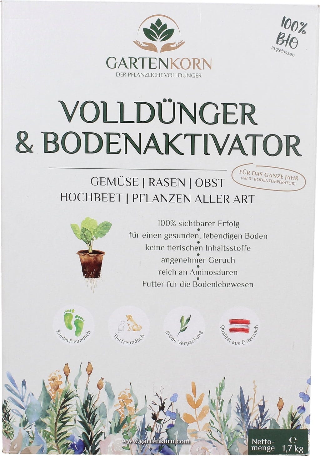 To popolno organsko gnojilo je idealno za zelenjavo, trate, sadje, dvignjene gredice in vse vrste rastlin, je izključno rastlinskega izvora in zato ne vsebuje nobenih živalskih sestavin. Gnojilo je bogato z aminokislinami in zato tudi aktivator tal. Idealen za lepe rastline, zdravo trato in bogato letino.