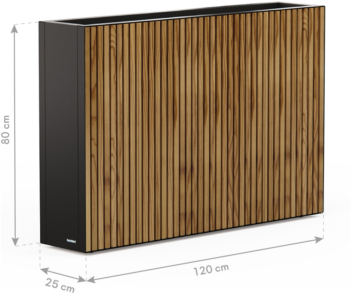 Stilsko dovršen, brezčasen dizajn se združuje s funkcionalno estetiko. Visokokakovostni "Deco Planter Divider" navdušujejo z elegantno kombinacijo kovine i lesa ter s svojo vsestranskostjo. Popolni za teraso, vrt i bivalne prostore.