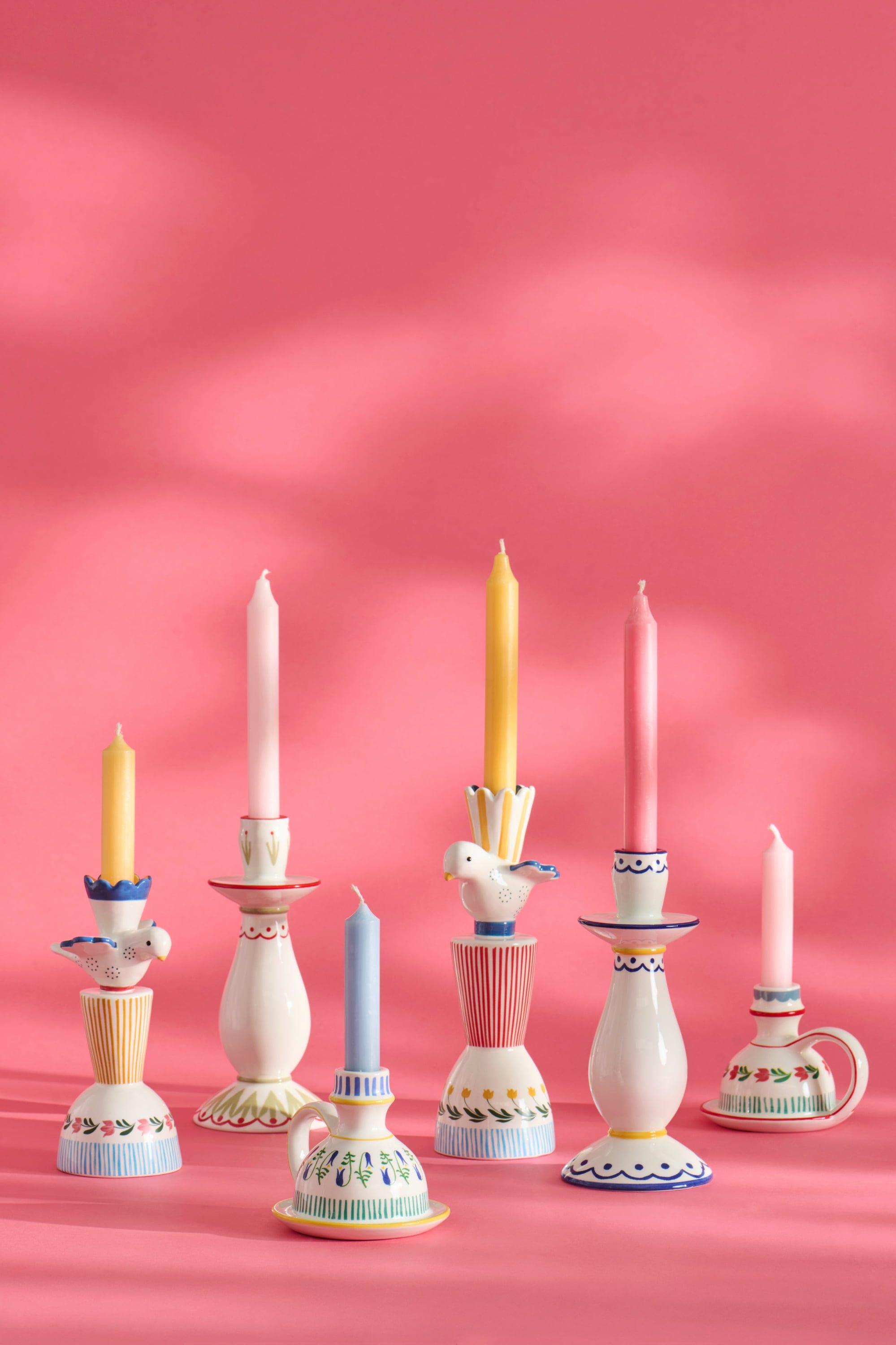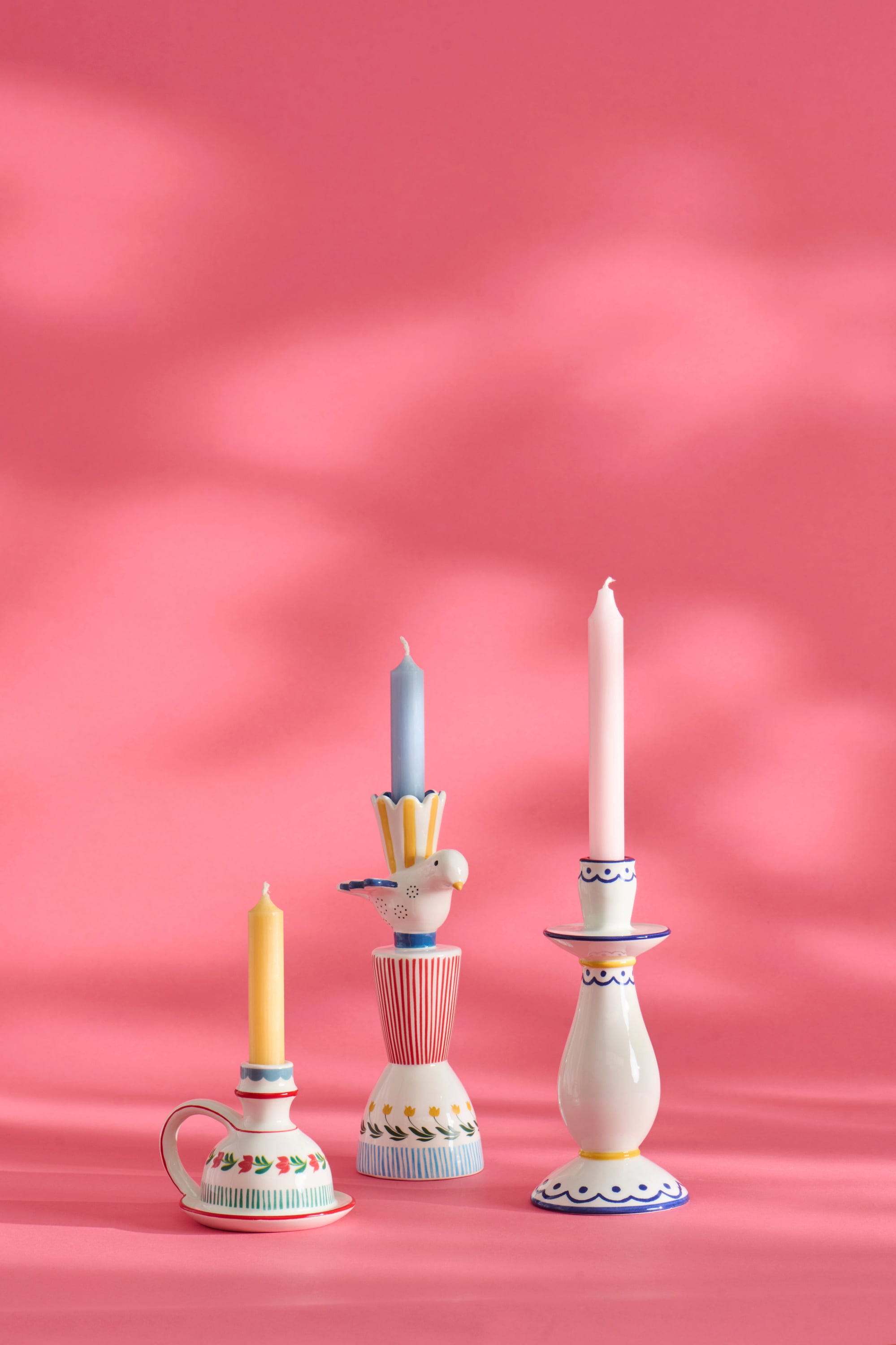 IB Laursen Belo-moder svečnik z rumenim vzorcem
