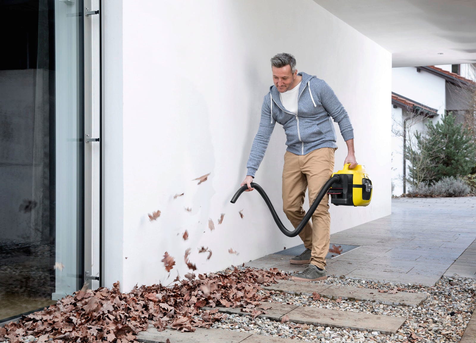 Tudi pri manjših delih v delavnici ali pri odstranjevanju prahu in umazanije s tal, na primer s površin s ploščicami ali betona, ta kompaktni sesalnik prepriča s preprosto uporabo. V kompletu priloženi šobi za fuge in oblazinjenje dodatno olajšata temeljito čiščenje težko dostopnih predelov.