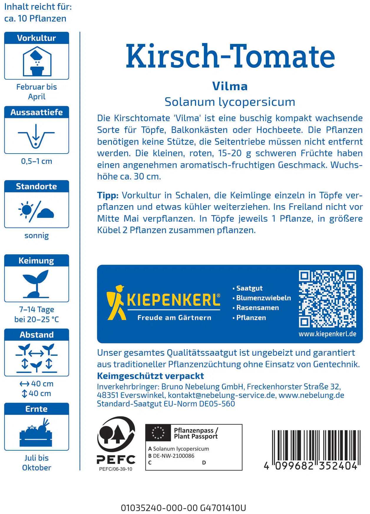 Izkušnenj v jeziku slovenščina za izdelek Kiepenkerl Češnjev paradižnik "Vilma"
