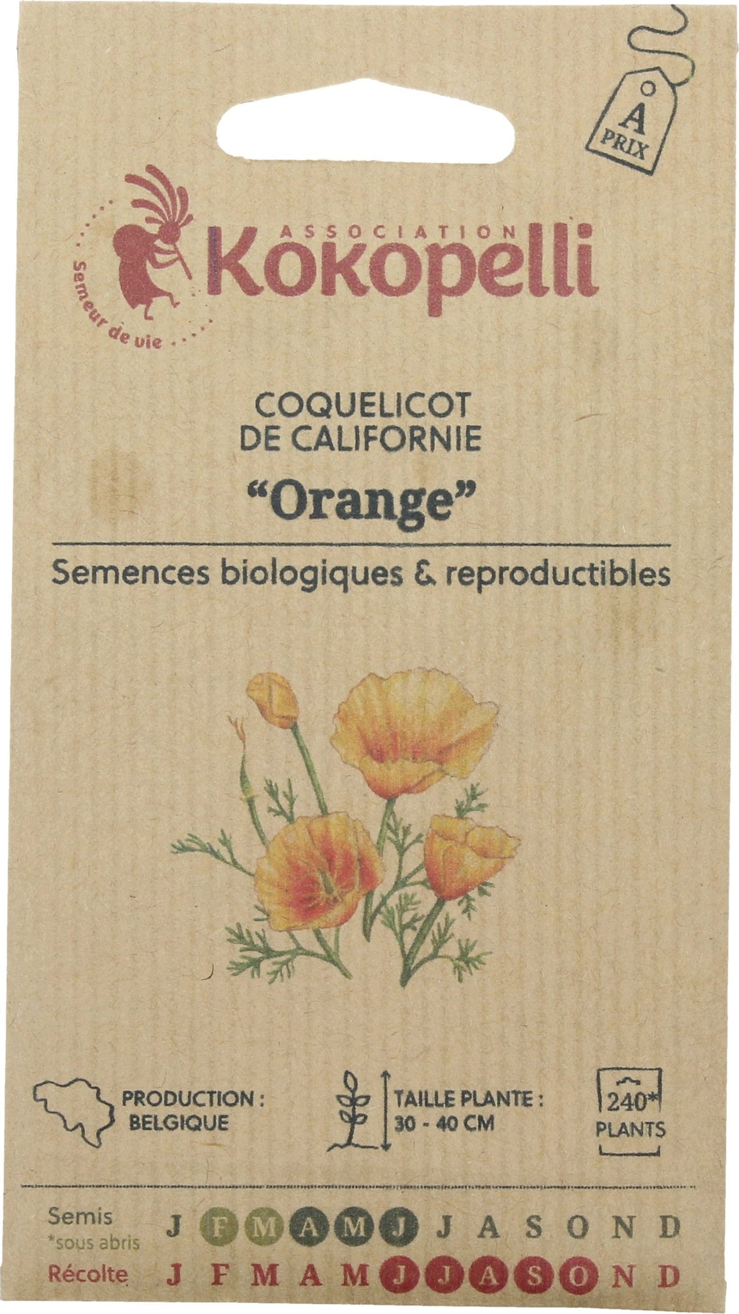 Kokopelli Bio kalifornijski mak "Orange", 300 zrn.