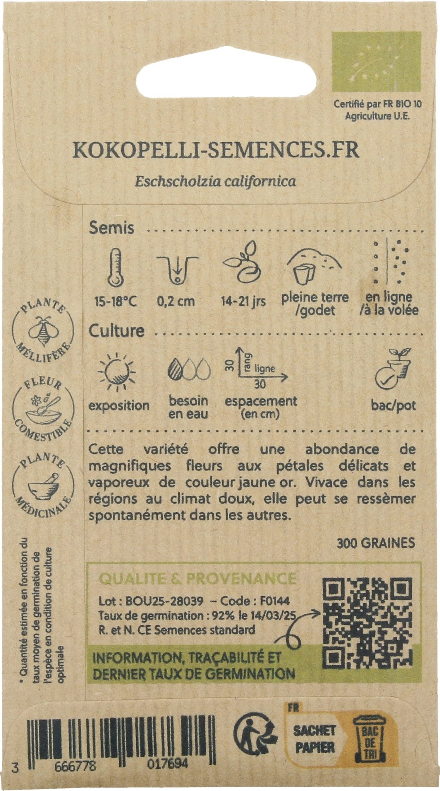Izkušnenj v jeziku slovenščina za izdelek Kokopelli Bio kalifornijski mak "Orange"