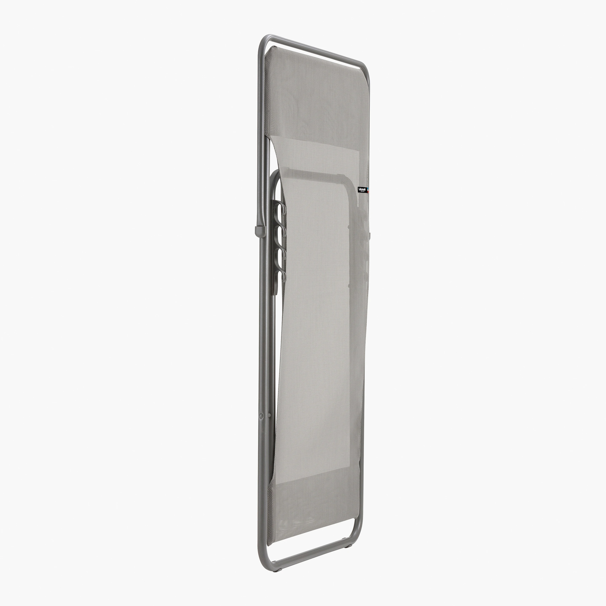 MAXI TRANSAT združuje dodatno udobje za najvišje zahteve z edinstveno praktičnostjo. Zaradi velike ležalne površine, ultrakompaktnih zložljivih dimenzij in štirih nastavljivih položajev sedenja je popoln partner za balkon, teraso in bazen. Odstranljiva prevleka iz odporne in zračne tkanine Batyline® Iso zagotavlja odlično UV odpornost in preprečuje vlago, saj lahko voda kadarkoli odteče.