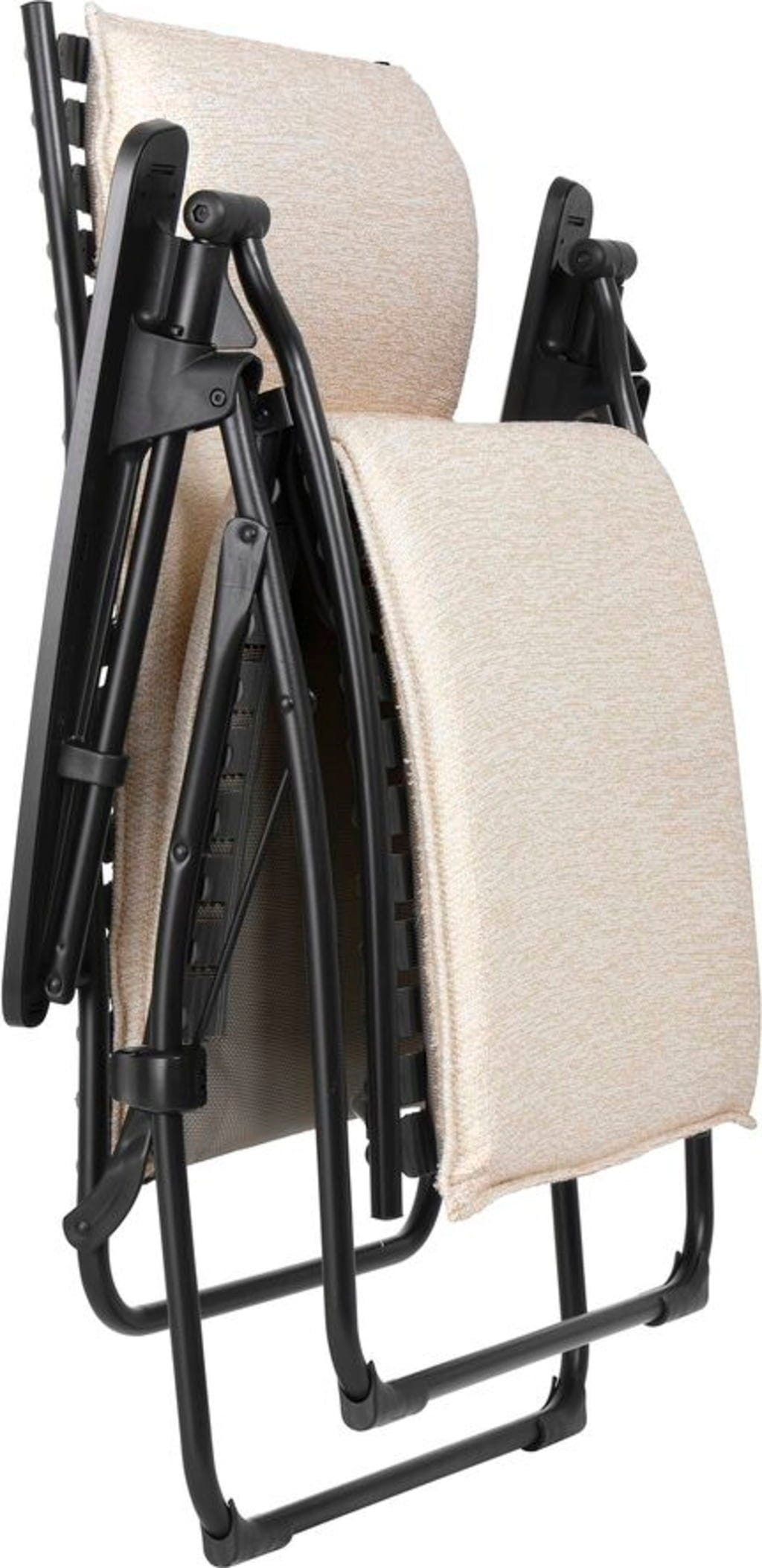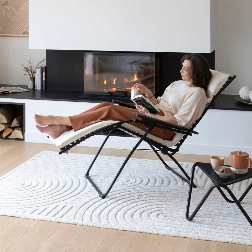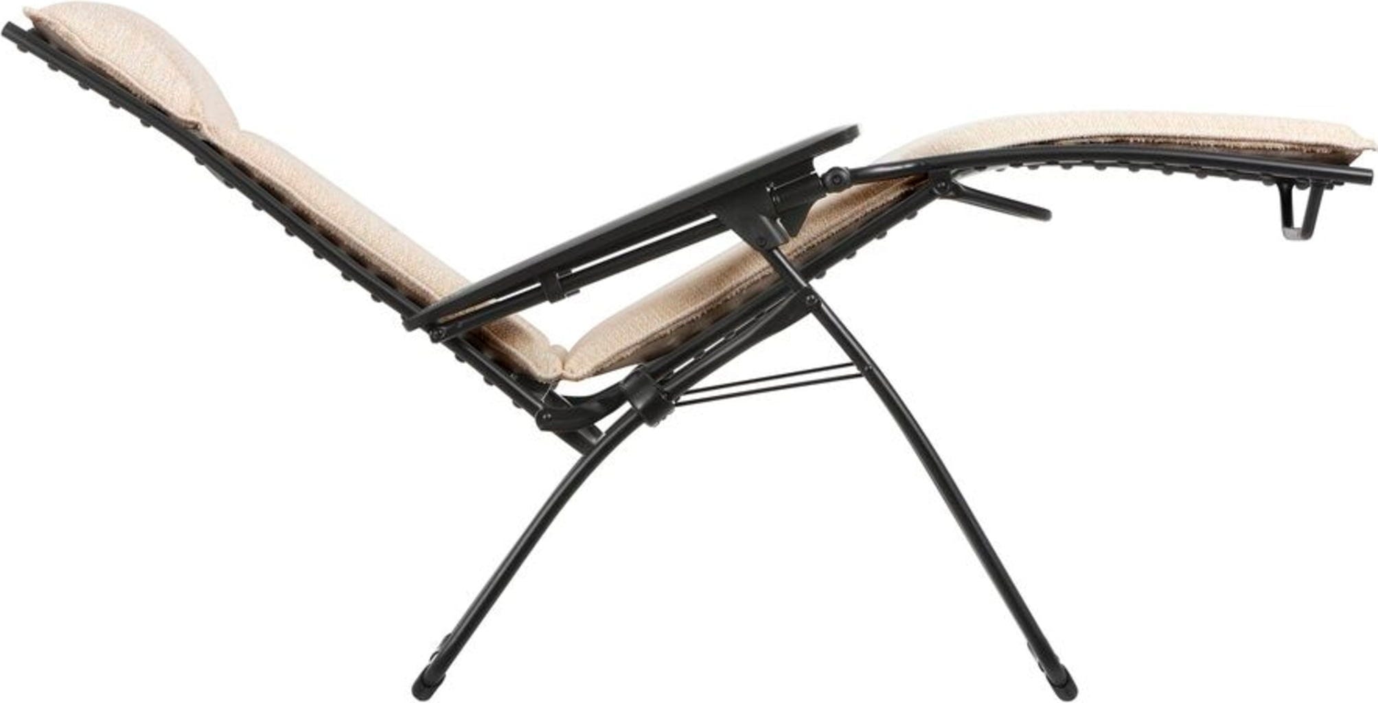 Privoščite si popoln oddih s tem izjemnim naslanjačem EVOLUTION Niksen znamke Lafuma, ki združuje sodobno obliko in maksimalno sprostitev. Zaradi ergonomskega položaja "brez gravitacije" so vaše noge nekoliko nad ravnijo srca, kar vam zagotavlja neprimerljivo lahkoten občutek. V popolnem udobju uživajo tudi visoki ljudje do višine 180 cm.