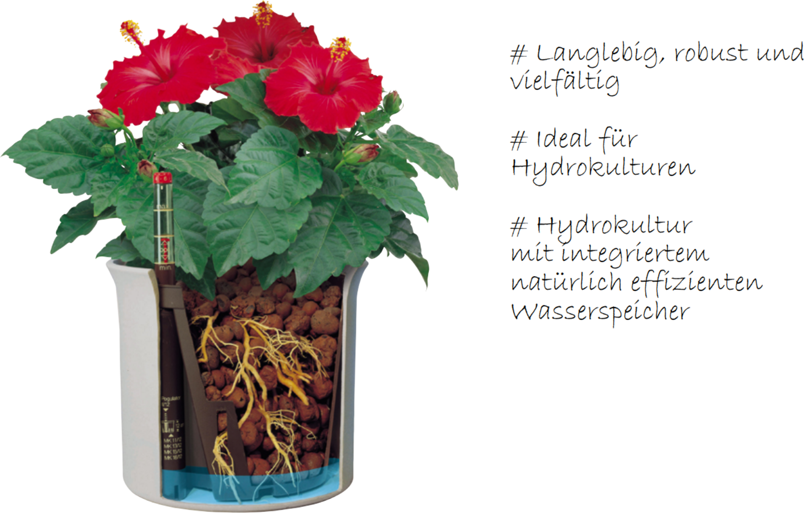 Lonci za kulturo za hidroponiko so nepremočljivi cvetlični lonci, ki zagotavljajo optimalno prileganje rastlinam v hidroponiki. Primerne so tudi za uporabo v tleh in mešanih kulturah.