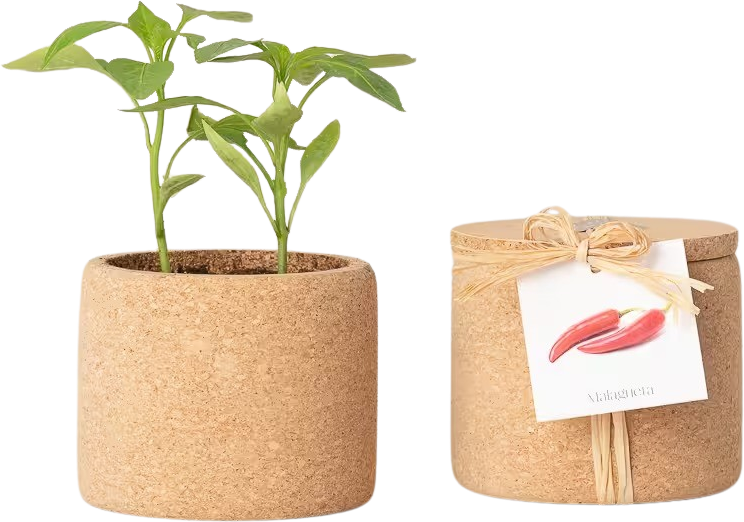 Grow Cork "Čili" vam prinaša sveže, barvite čilije kar na dom. Lonček iz plute za večkratno uporabo je priročen, trajnosten in idealen za majhne prostore, balkone ali vrtove. Preprosto posejte semena, zalijte in opazujte, kako rastejo – idealno za začetnike in odlično darilo za ljubitelje kuhanja in rastlin.