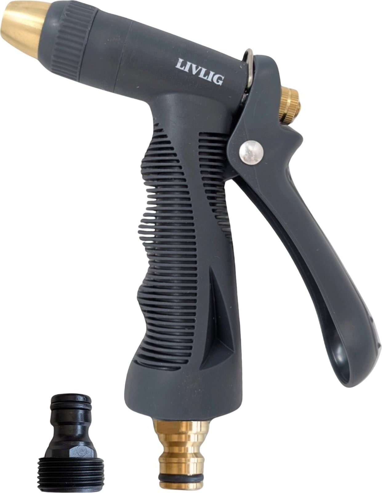 Ta vrtni razpršilnik se odlično ujema z vrtnimi cevmi znamke Livlig in ga je mogoče kombinirati tudi z drugimi standardnimi 1/2-palčnimi vrtnimi cevmi. Združuje eleganten dizajn in visoko funkcionalnost ter je popoln vrtni pripomoček za zalivanje in čiščenje.