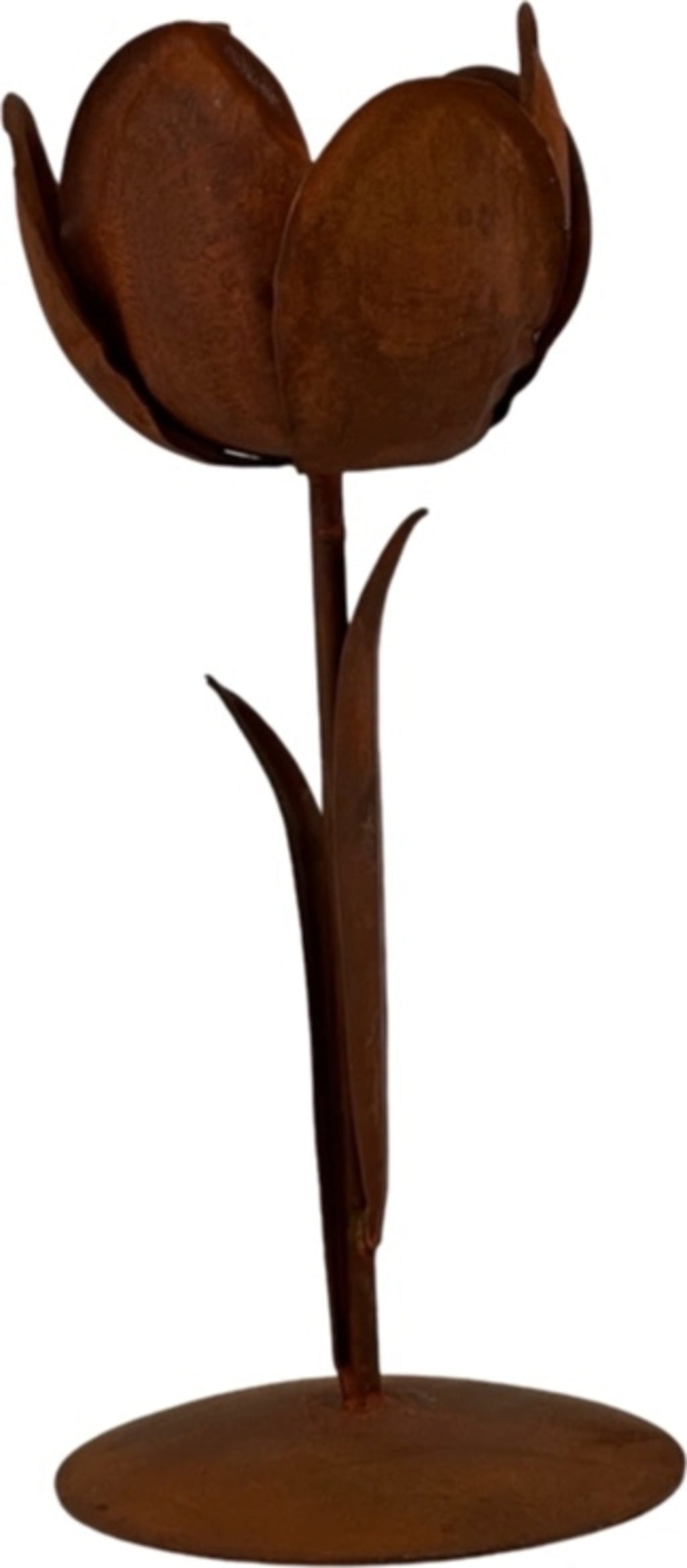 Svečnik "Tulipan" prinaša na mizo romantičen čar. Zasnovan je v obliki cveta in ponuja dekorativni prostor za stožčaste sveče. Izdelan je iz robustnega železa in ima antično-rustikalen videz, zato združuje rustikalno estetiko s cvetlično lahkotnostjo.