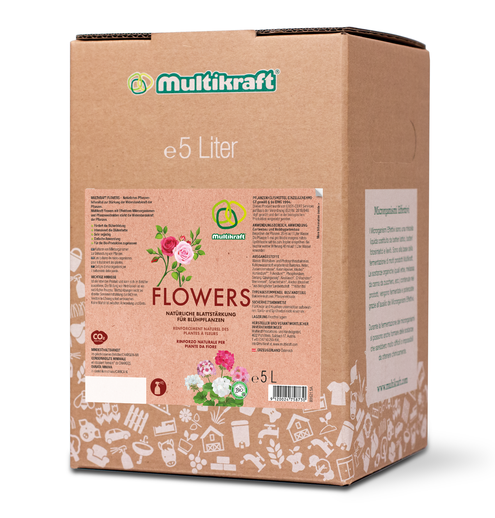 To naravno krepilo rastlin z učinkovitimi mikroorganizmi je primerno za cvetoče rastline in podpira njihovo zdravo rast ter nastanek lepih, intenzivno obarvanih cvetov.