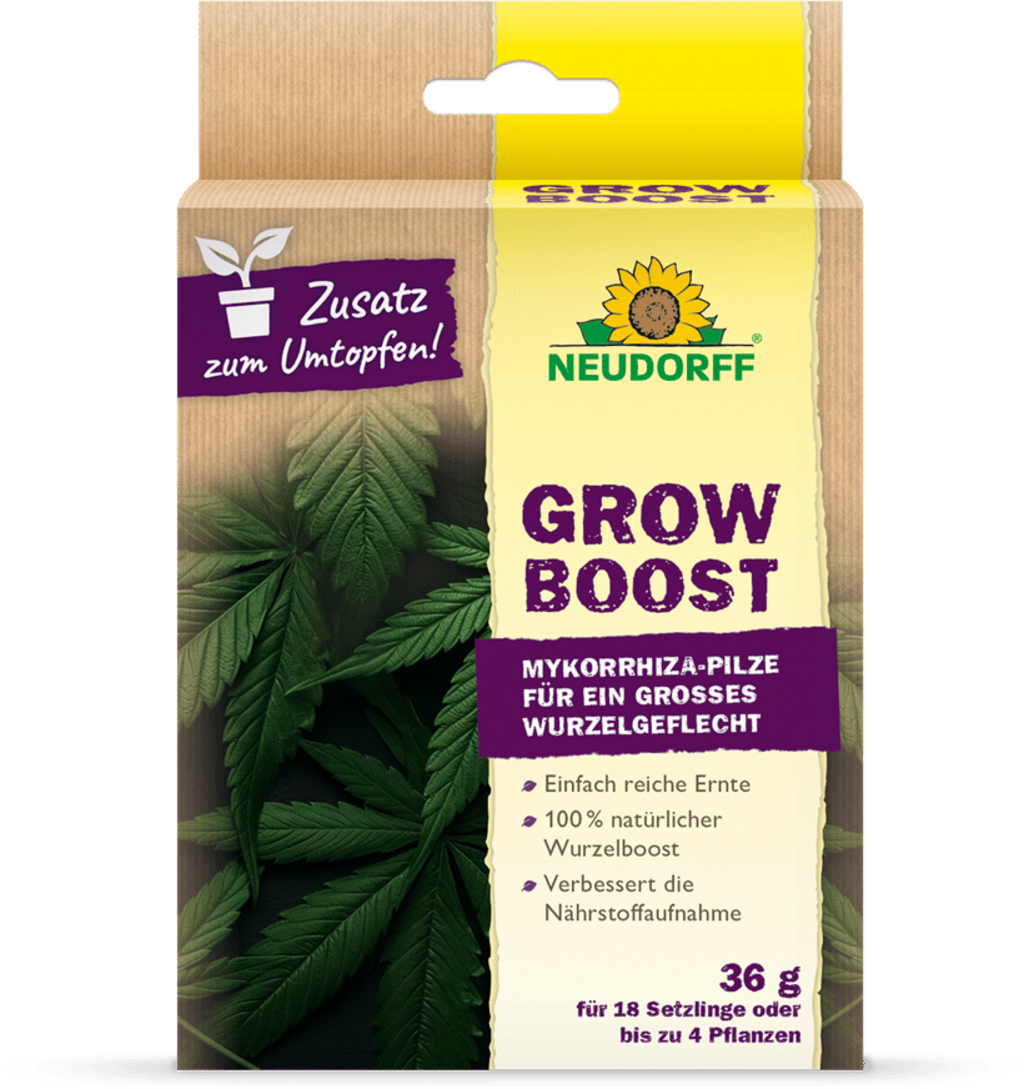 GrowBoost je zanesljiva, trajnostna podpora, posebej za rastline konoplje. Z dodatkom mikoriznih gliv se poveča aktivnost korenin, kar prispeva k optimizirani absorpciji vode in hranil. Tako podpira vraščanje ter poskrbi za večjo odpornost proti stresu in suši.