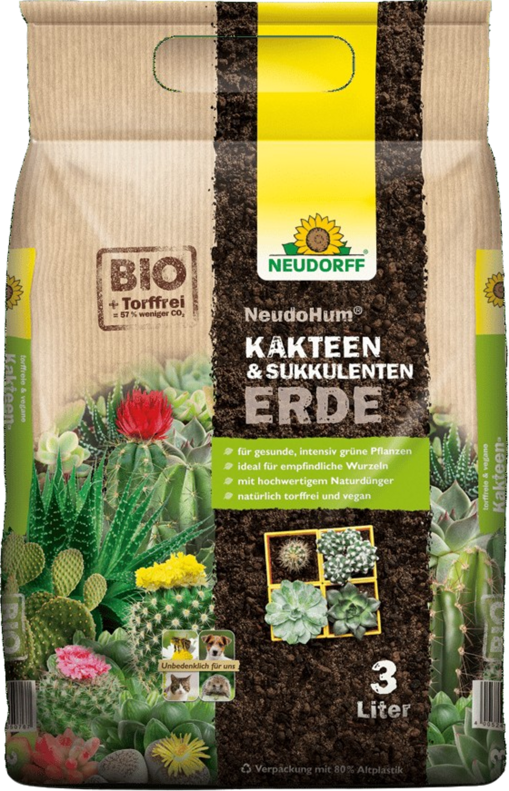 NeudoHum prst za kaktuse in sukulente rastlinam nudi vse, kar potrebujejo. Zahvaljujoč bio začetnemu gnojenju so nekaj tednov dobro oskrbljene. Hkrati zaradi visokega deleža gline zagotavlja stabilno oporo, pesek pa preprečuje zastajanje vode.