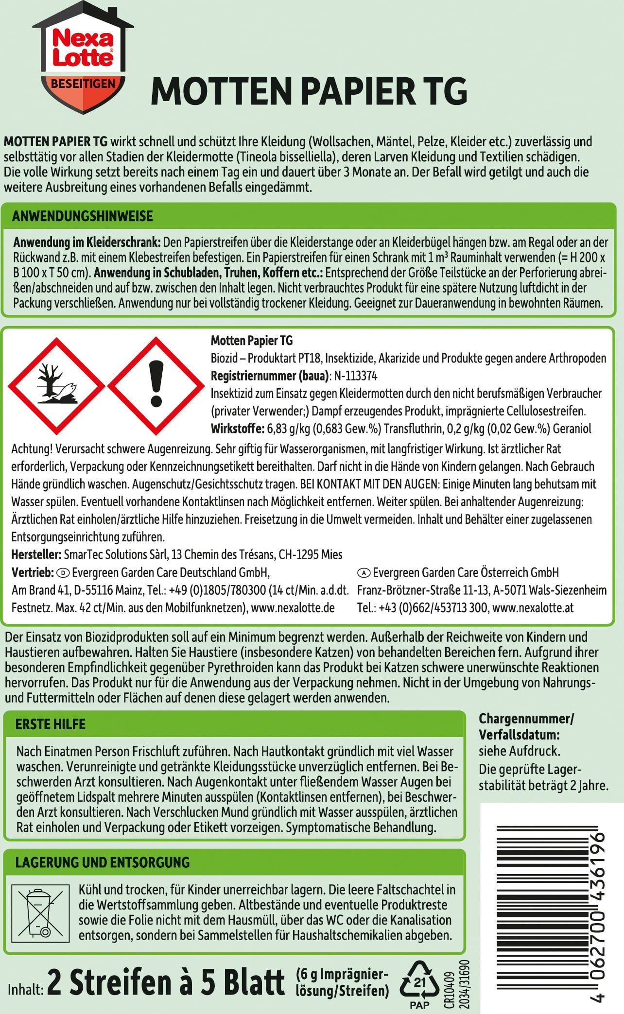Izkušnenj v jeziku slovenščina za izdelek NexaLotte Zaščita pred molji Nexa Lotte®