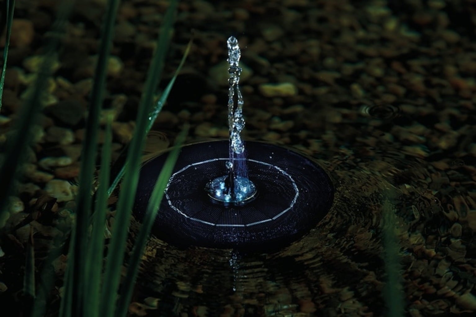 Vgrajen solarni panel omogoča čudovito vodno igro s fontanami do višine 50 cm, katerih videz lahko prilagodite s štirimi različnimi šobami. Poseben učinek pričarajo LED-lučke, ki se ob mraku samodejno prižgejo in osvetlijo vodni curek – popoln vizualni poudarek za vaš ribnik!