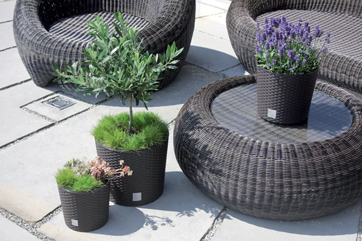 Okrogli cvetlični lonec s privlačnim videzom ratana v vaš dom vnaša sodoben pridih naravnosti. Primeren je za notranje prostore ter vrtove, terase in balkone ter je odličen način za dodajanje elegantnega zelenja. Posebej praktično: zaradi odstranljivega vložka za rastline je zasaditev še posebej enostavna, odvečna voda pa lahko odteče.