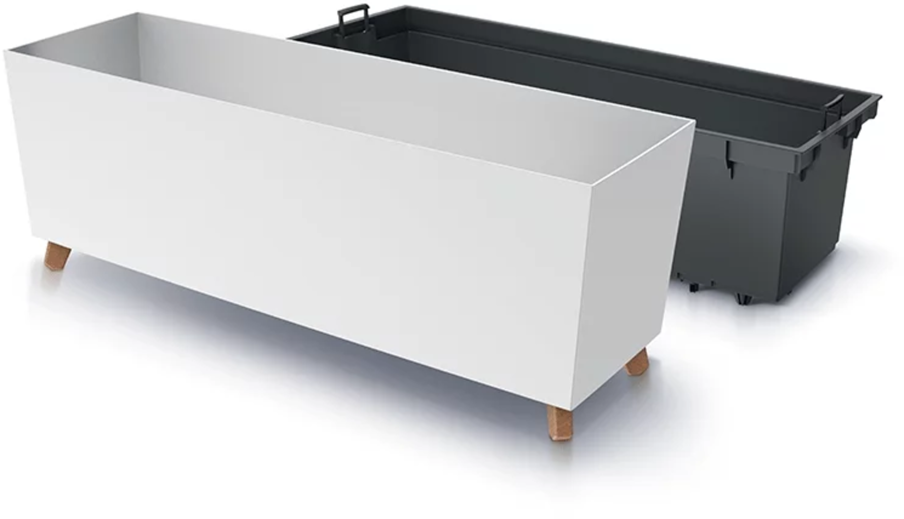Urbi Case N cvetlično korito na posebno estetski način daje strukturo notranjim in zunanjim prostorom. Posadite vanj svoje najljubše rastline in ga uporabite kot zeleno pregrado za prostore ali za razdelitev večjih zunanjih površin. Njegove nogice v videzu lesa mu dajejo lahkoten in zračen videz ter prijeten naraven pridih.
