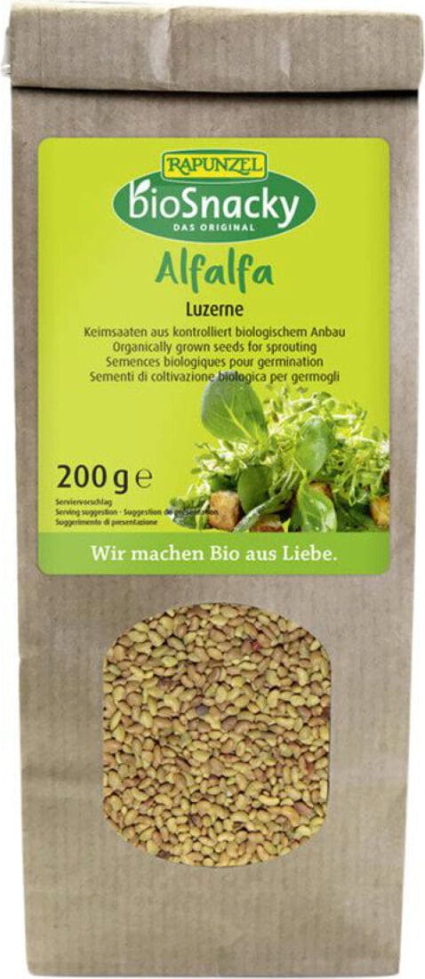 Kalčki lucerne iz evropske pridelave imajo blag okus po oreščkih in so idealni za solate, smutije, poletne zvitke, pomake in drugo. Kalčke lahko pobirate po sedmih do osmih dneh.