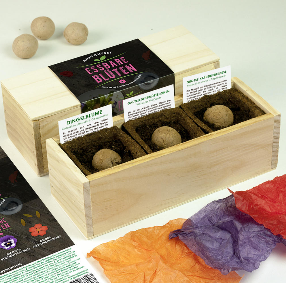 S tem praktičnim setom za vzgojo rastlin lahko povsem preprosto doma vzgojite lastne užitne cvetove. Popolno za ustvarjalne jedi, sladice ali kot dekorativen poudarek – idealno za vse, ki cenijo trajnostno vrtnarjenje.