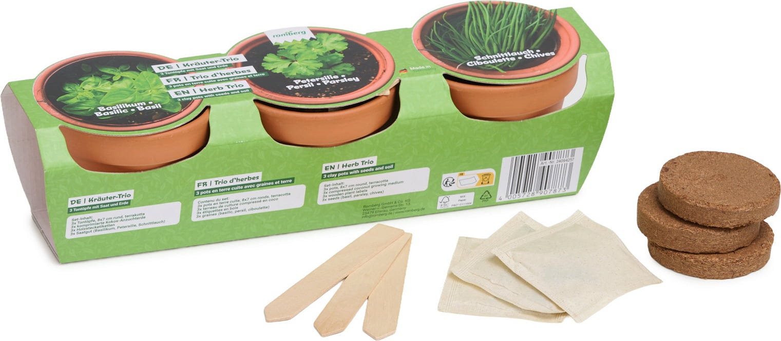 Romberg Set za gojenje zelišč z glinenimi lonci