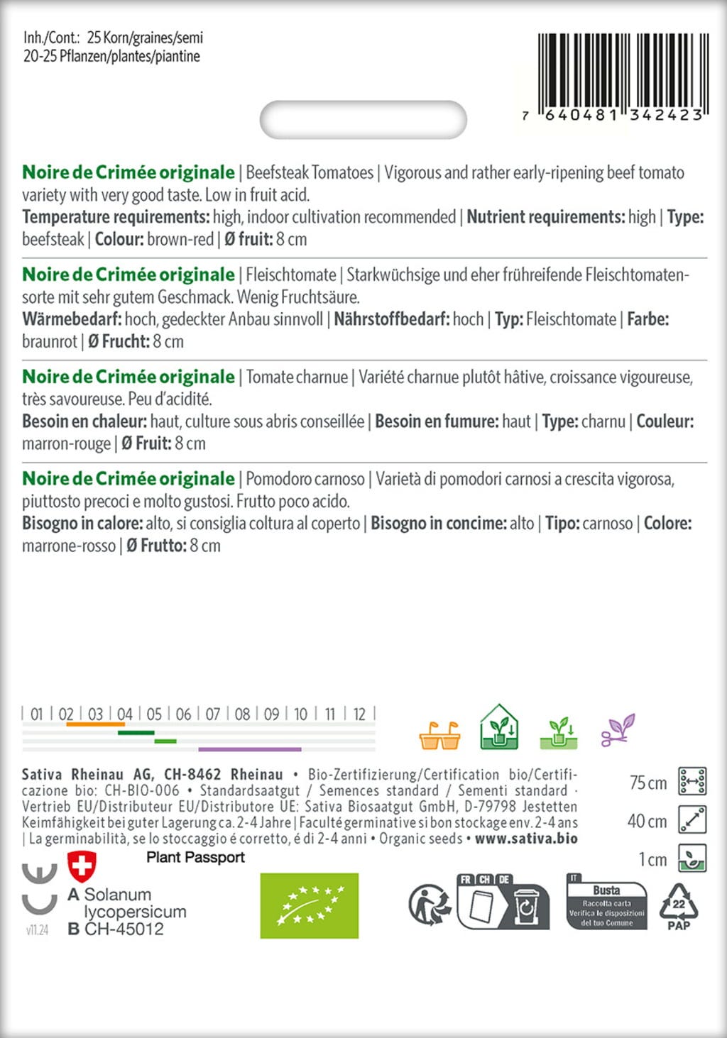 Izkušnenj v jeziku slovenščina za izdelek Sativa Bio mesnati paradižnik "Noire de Crimée originale"