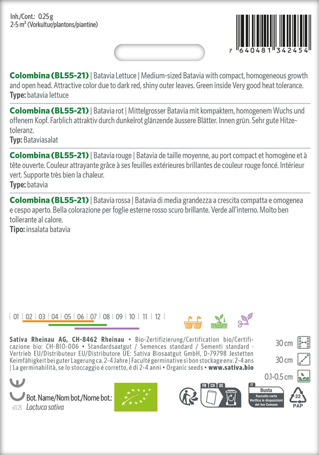 Izkušnenj v jeziku slovenščina za izdelek Sativa Bio solata "Batavia rot Colombina"