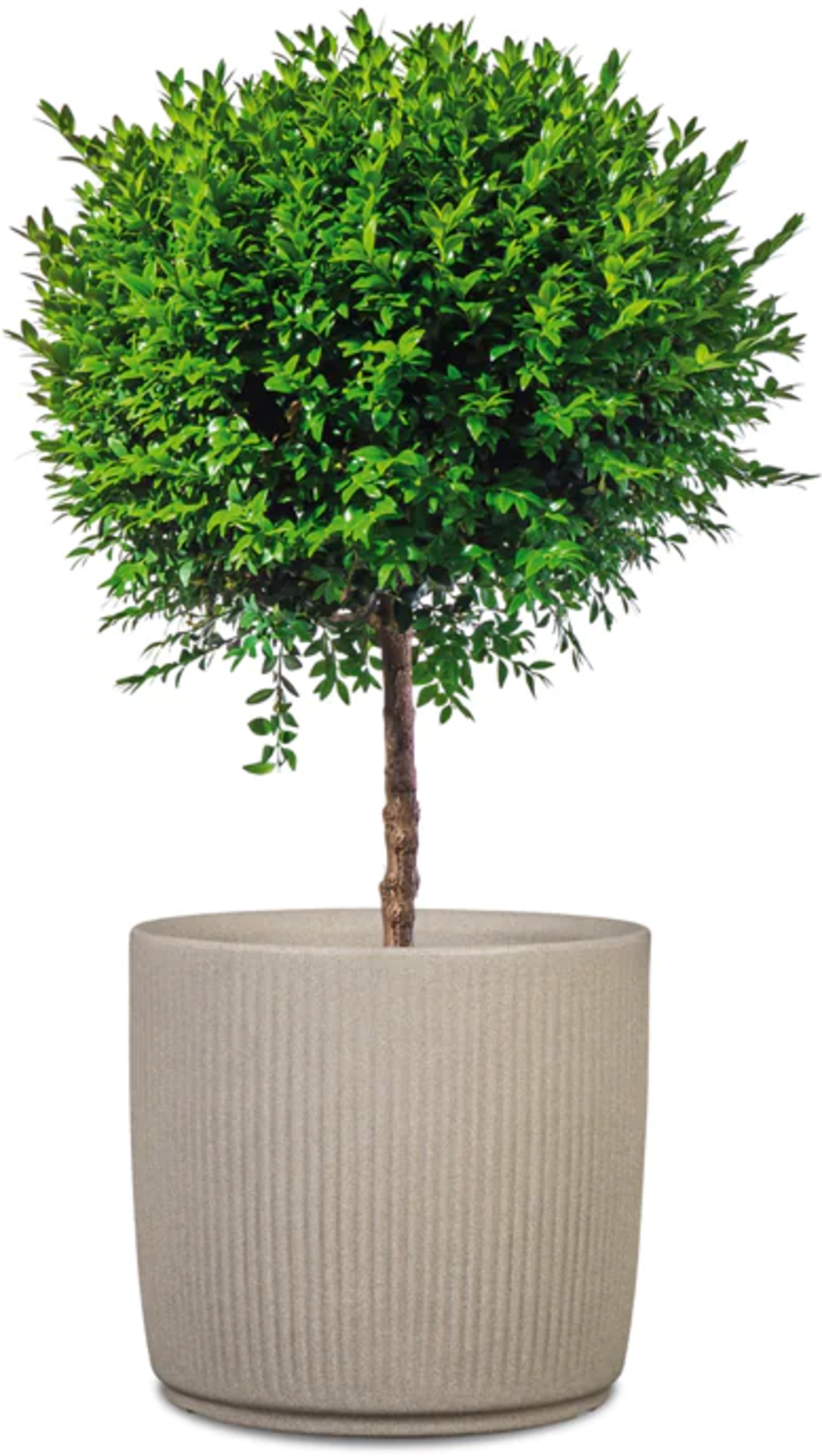 Linetto cvetlični lonec združuje sodoben dizajn z naravno estetiko in visoko funkcionalnostjo. Strukturiran rebrast vzorec ustvarja eleganten, ročno izdelan videz, robustna zasnova pa ga naredi idealnega za uporabo na prostem.