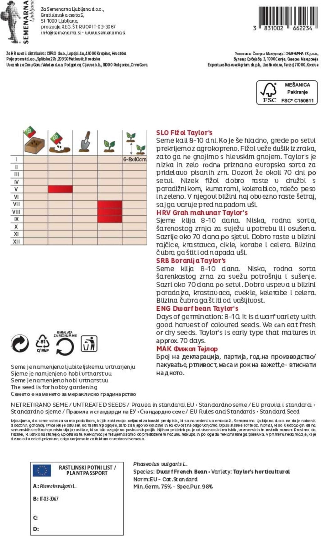 Izkušnenj v jeziku slovenščina za izdelek Semenarna Ljubljana Fižol "Taylor's"
