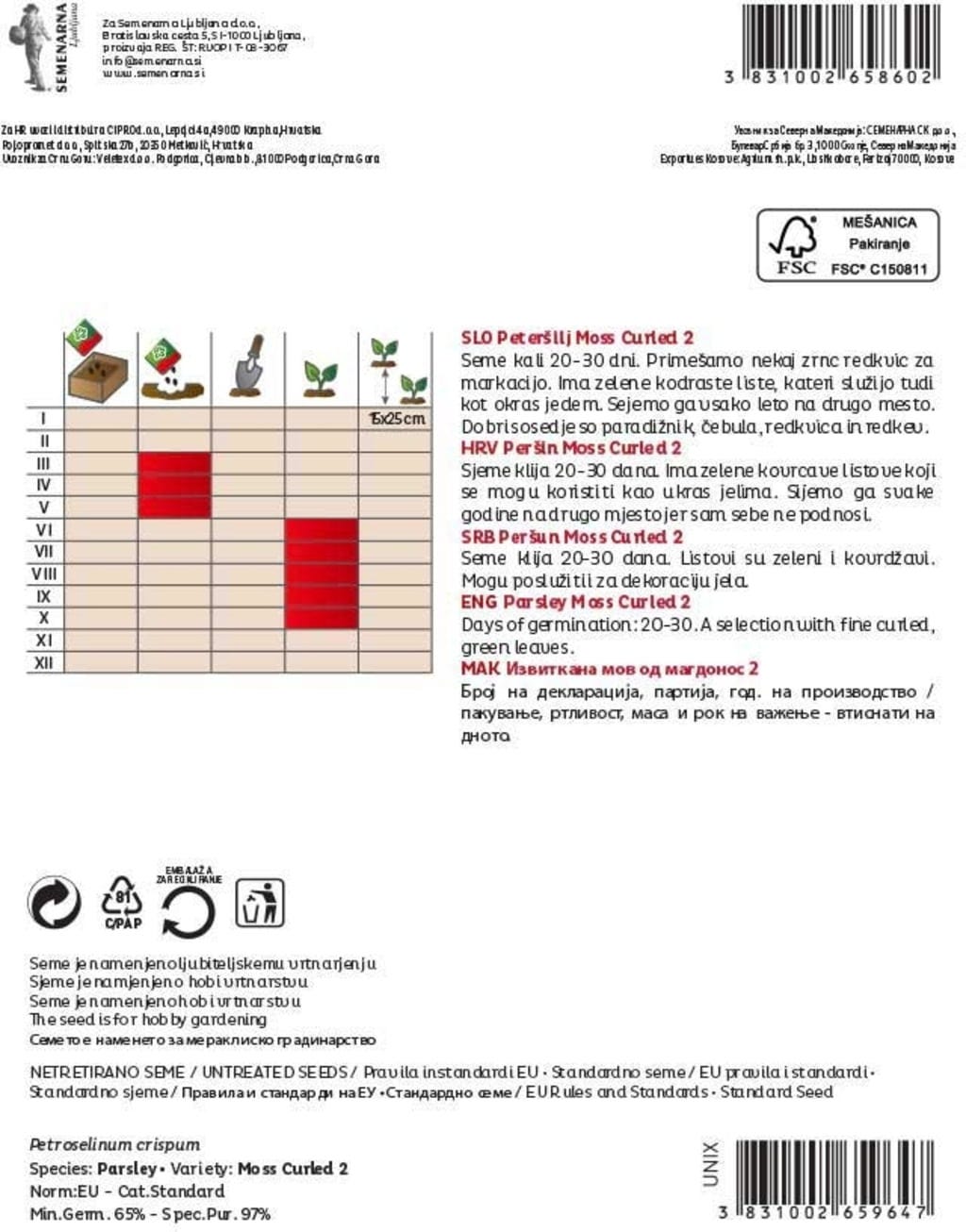 Izkušnenj v jeziku slovenščina za izdelek Semenarna Ljubljana Petršilj "Moss Curled 2"